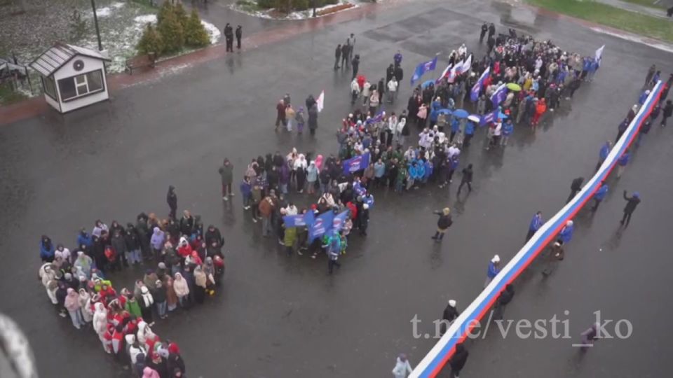 Его развернули участники флешмоба в честь Дня народного единства, который отмечается сегодня. В акции приняли участие более 300 человек - это студенты, представители органов власти, общественных организаций и др.Также они выстроились в виде букв в...