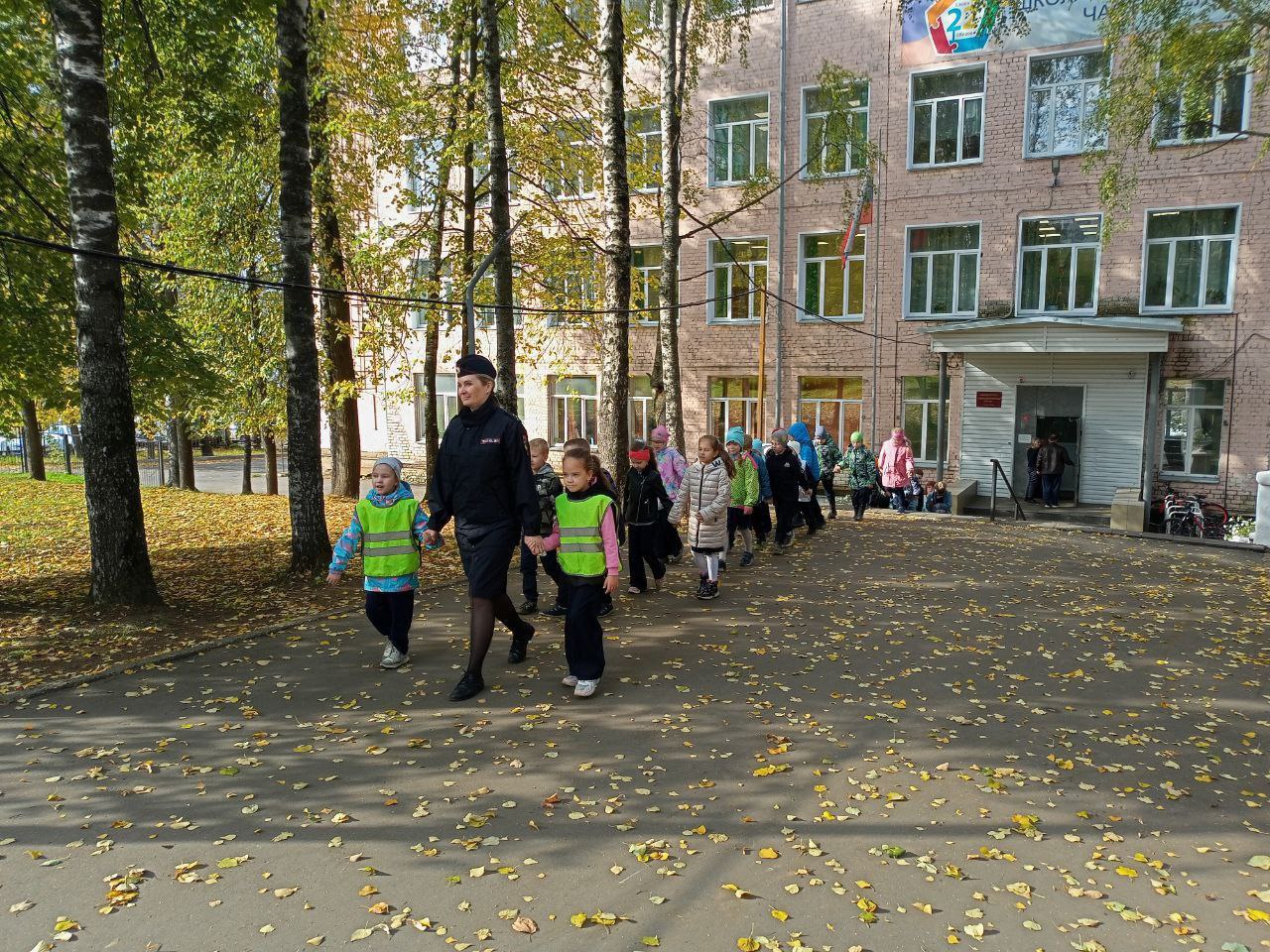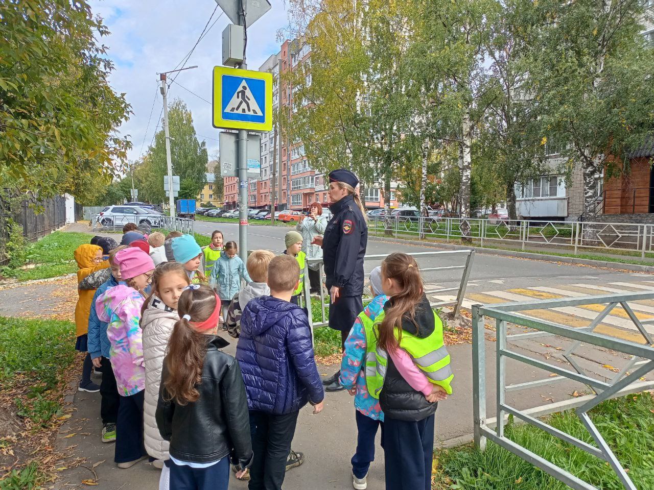 С целью предупреждения детского дорожно-транспортного травматизма и профилактики фактов нарушения правил дорожного движения детьми сотрудники Госавтоинспекции провели пешеходную экскурсию для учащихся школы № 22 г.Кирова