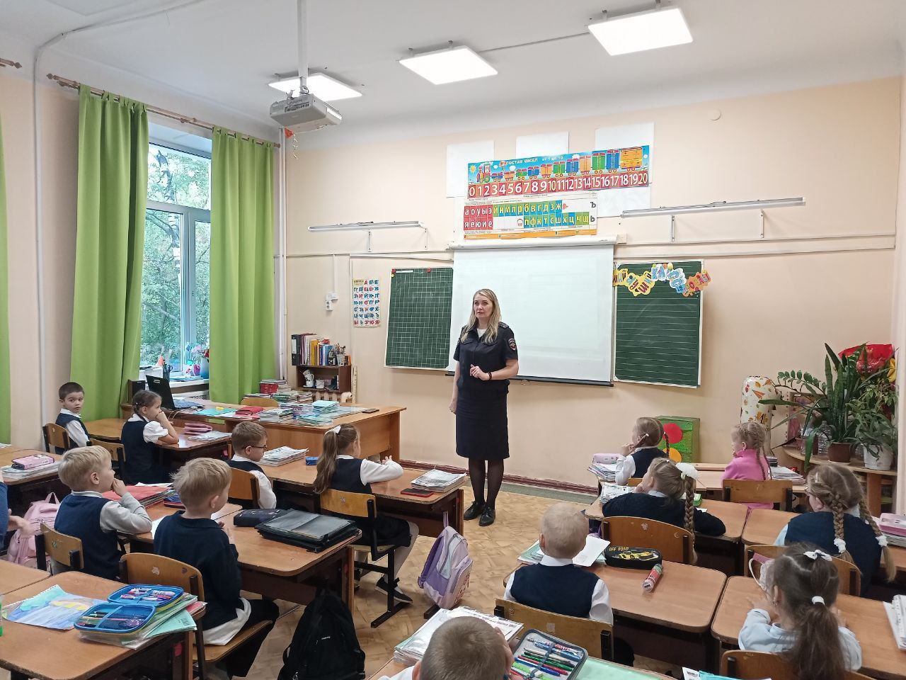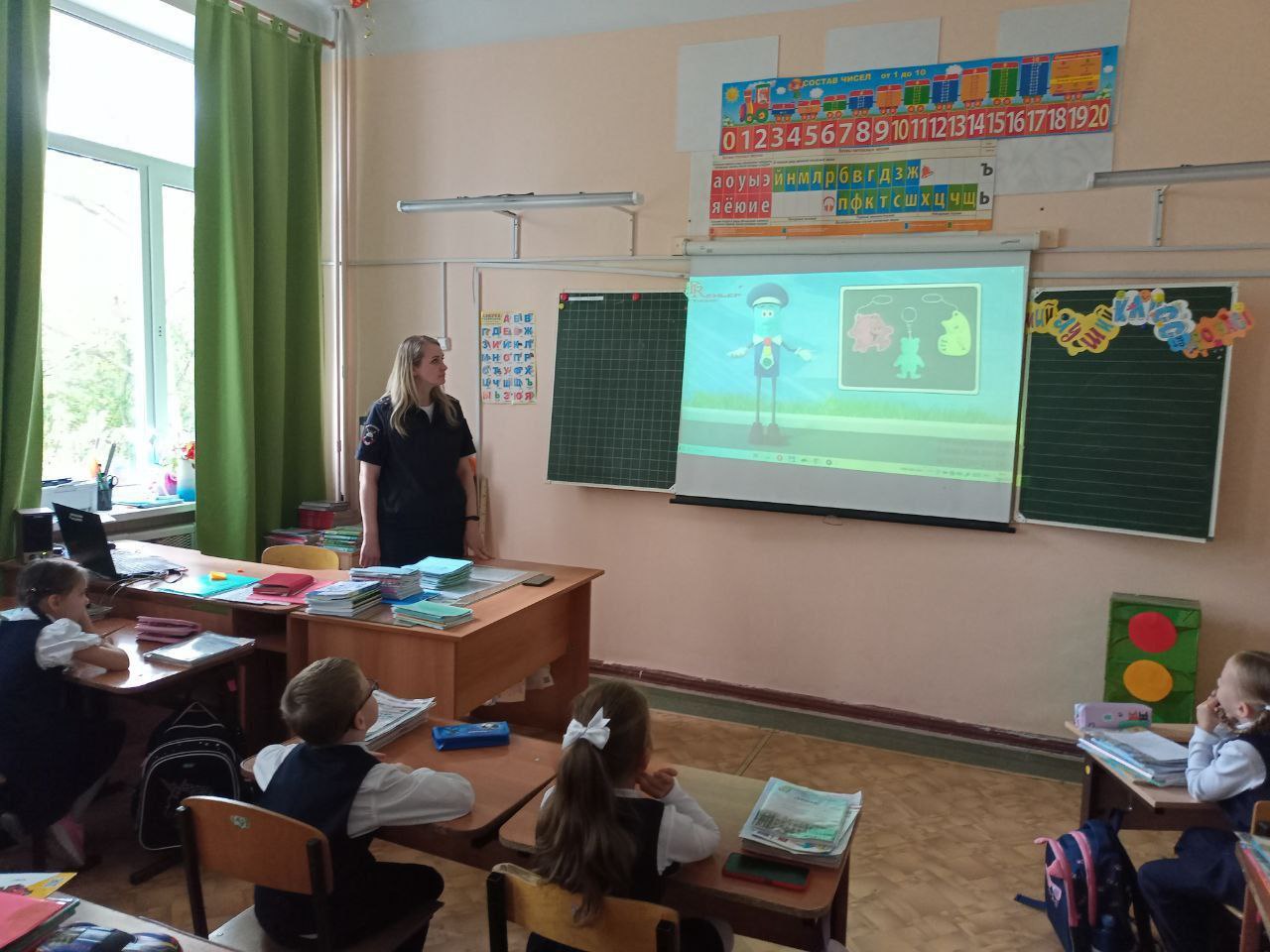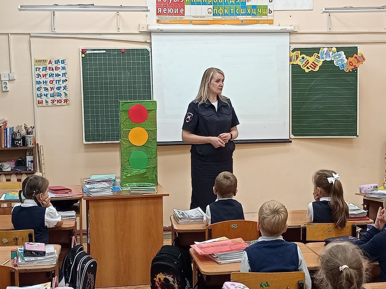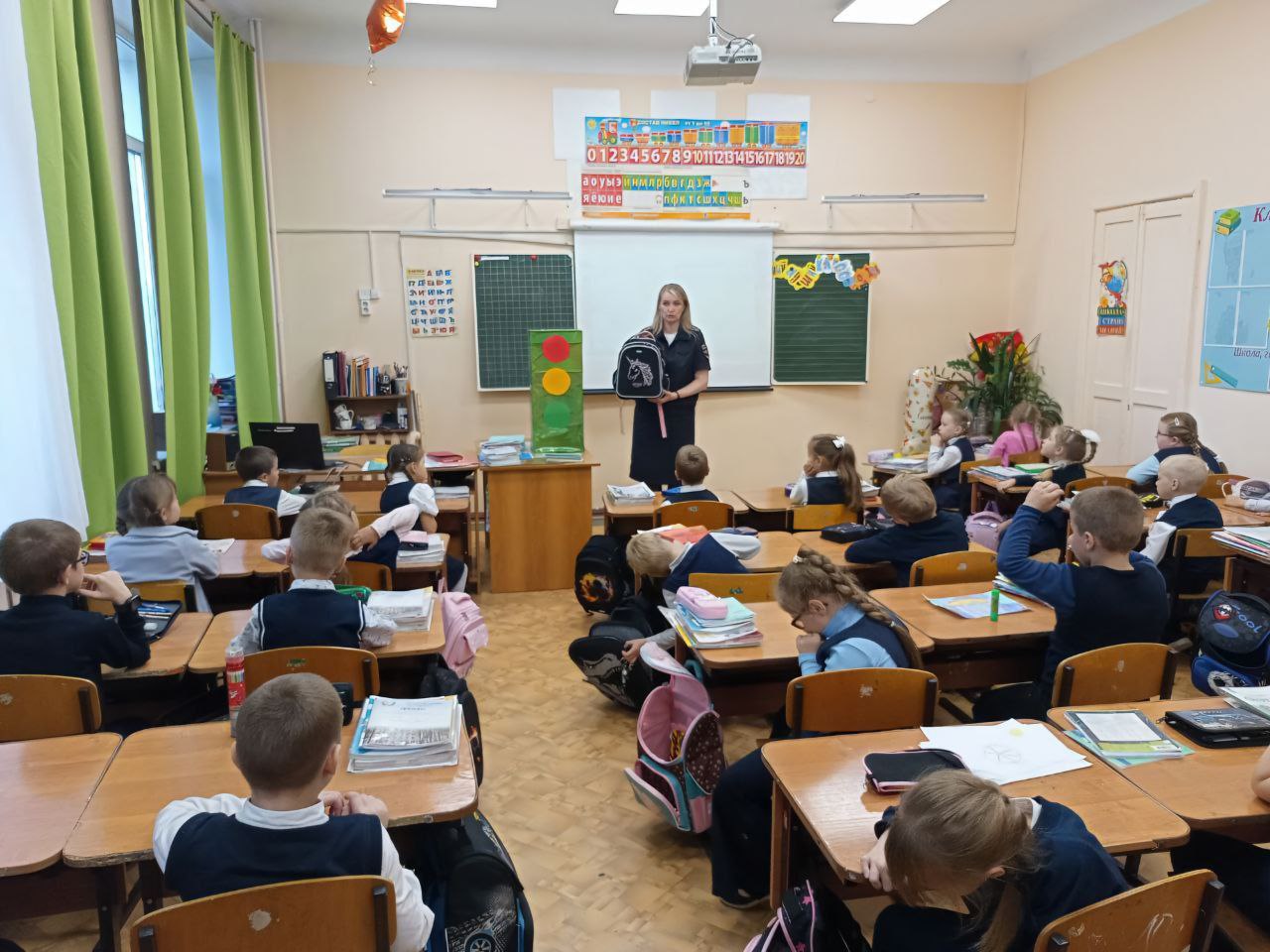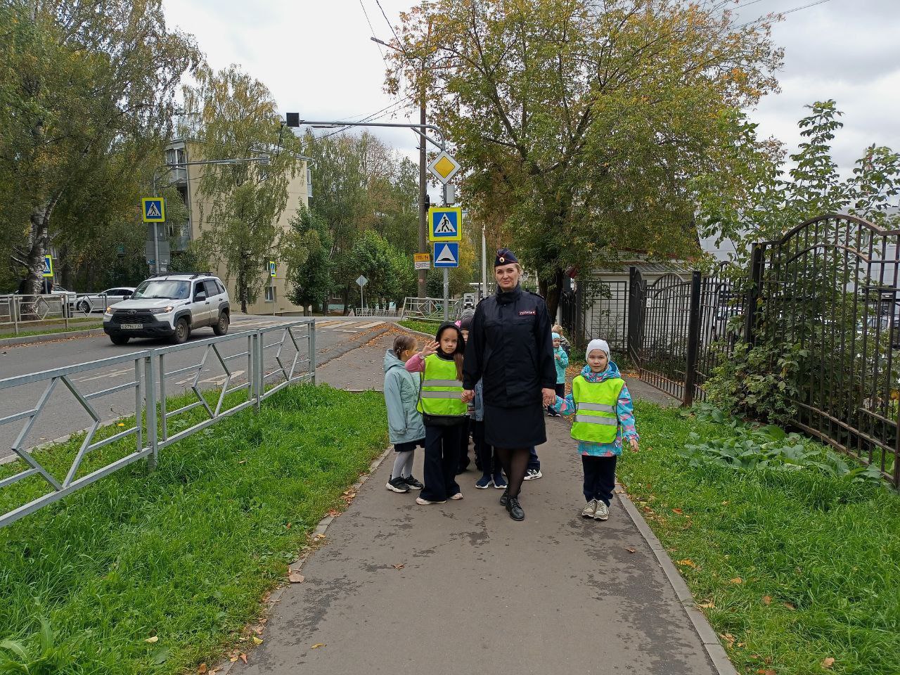 После урока дорожной грамотности первоклассники вместе с автоинспектором отправились по маршруту безопасного подхода к школе, с целью применения полученных теоретических знаний на практике, учиться оценивать дорожную обстановку и избегать аварийных ситуаций.