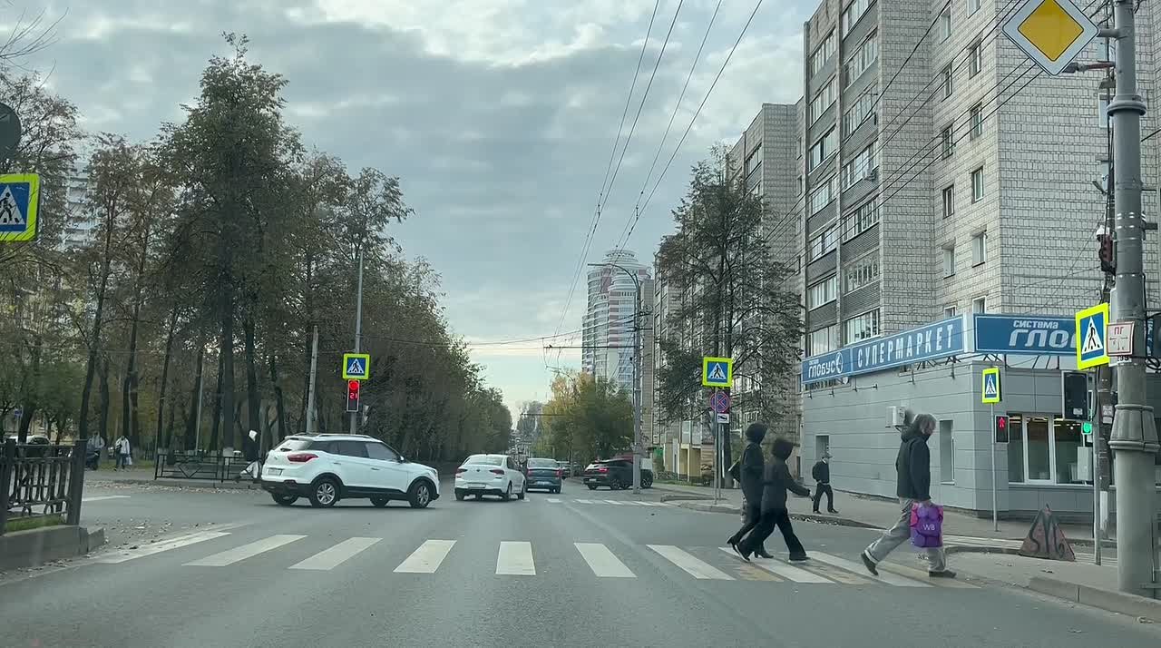 На видео: перекрёсток Октябрьского проспекта и улицы Труда.