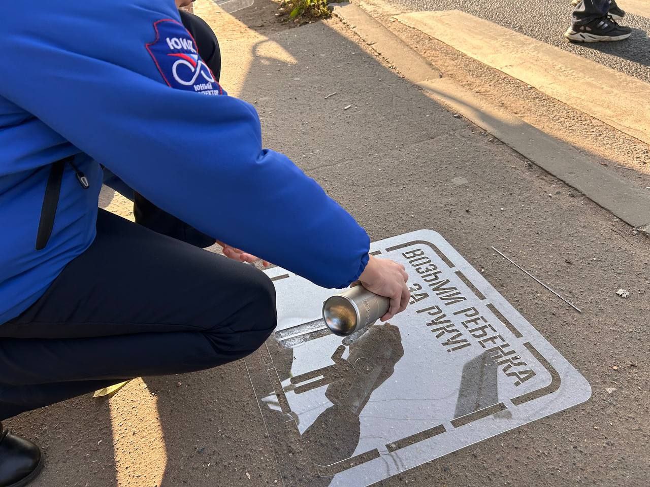 С помощью специальных трафаретов и красок участники акции нанесли на асфальт важные напоминания для взрослых и детей. Среди них такие послания, как: «Возьми ребенка за руку!», «Сними наушники», «Отвлекись от телефона».