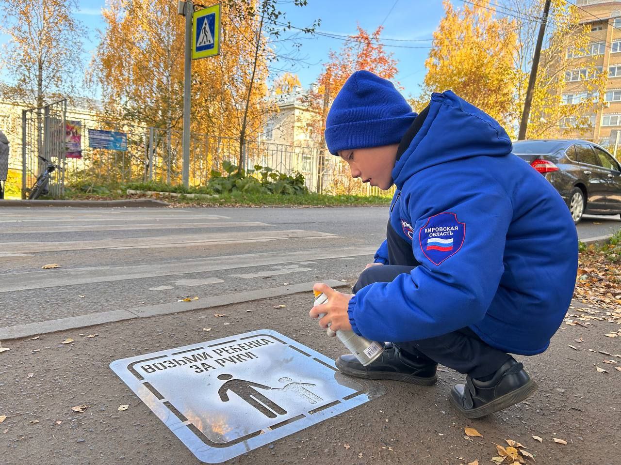 Сотрудники Госавтоинспекции совместно с юными инспекторами движения школы № 70 г.Кирова провели информационно- пропагандистскую акцию «Трафарет безопасности».