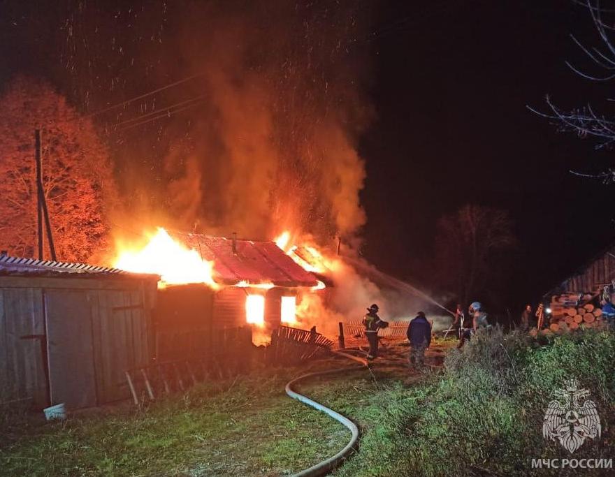 Сунский район, д. Краснополье - в 2-квартирном жилом доме (на фото) на площади 56 м (от МЧС России, муниципальной и добровольной пожарной охраны - 14 чел., 4 ед. техники).