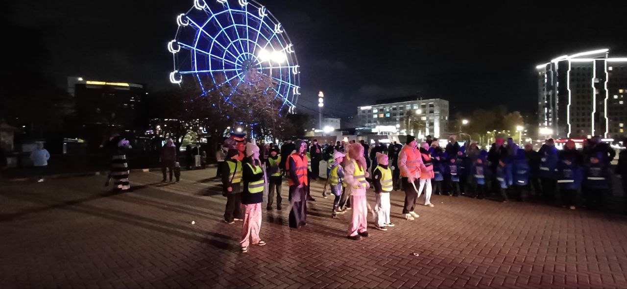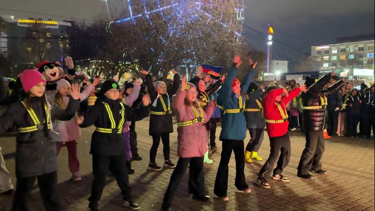 Чтобы наглядно продемонстрировать эффективность «светлячков» в движении, жители областного центра различных возрастных категорий разместили на своей одежде яркие аксессуары и исполнили танец под ритмичную музыку.