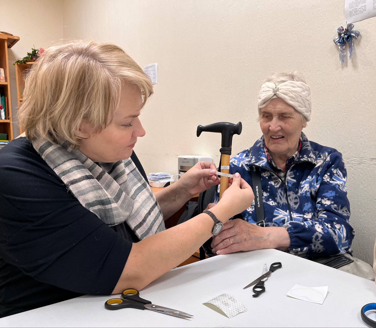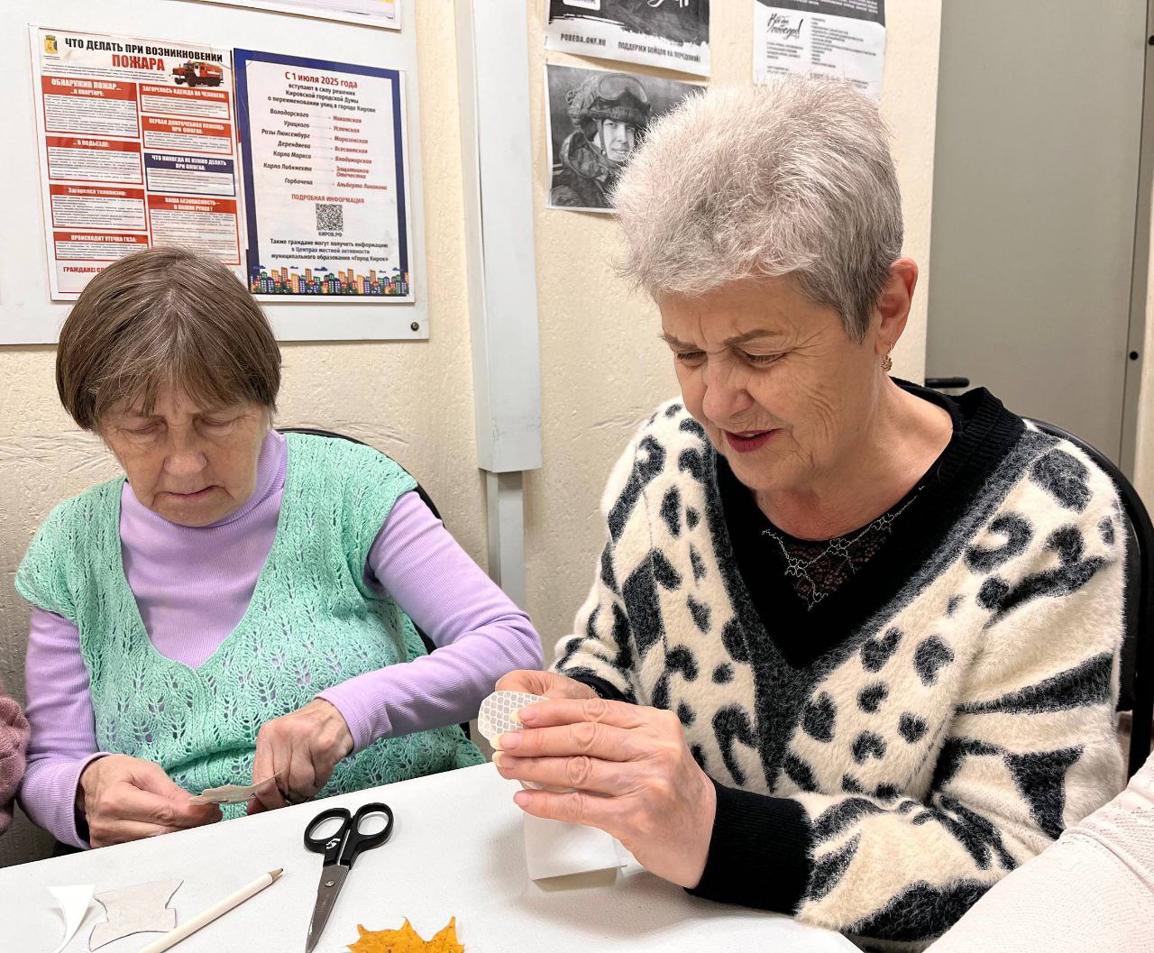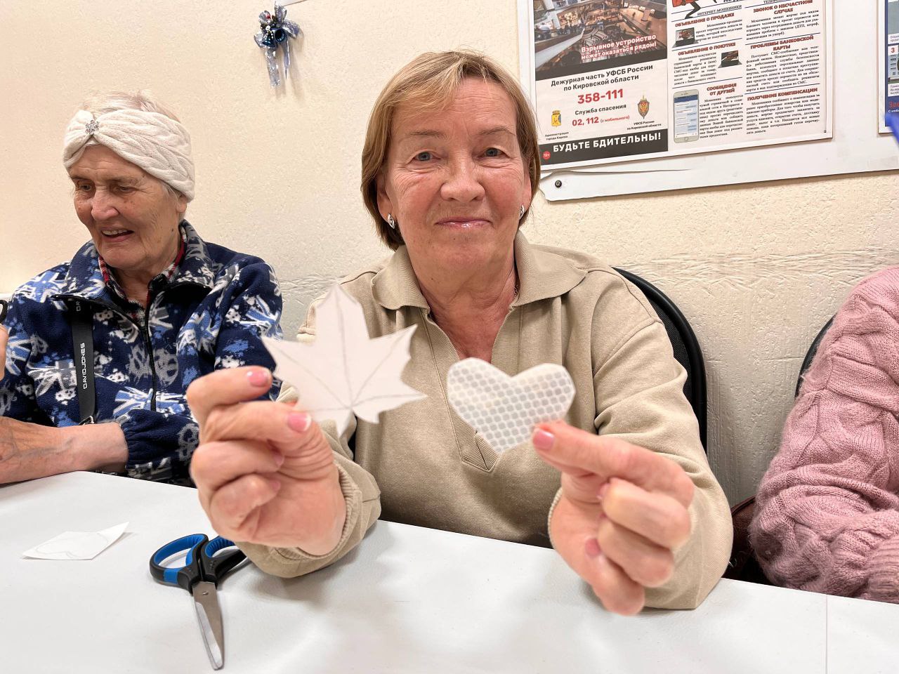После теоретической части каждый участник изготовил себе световозвращающий элемент — брелок и наклейку. Пенсионеры научились правильно размещать их на своей одежде, сумках и тростях.