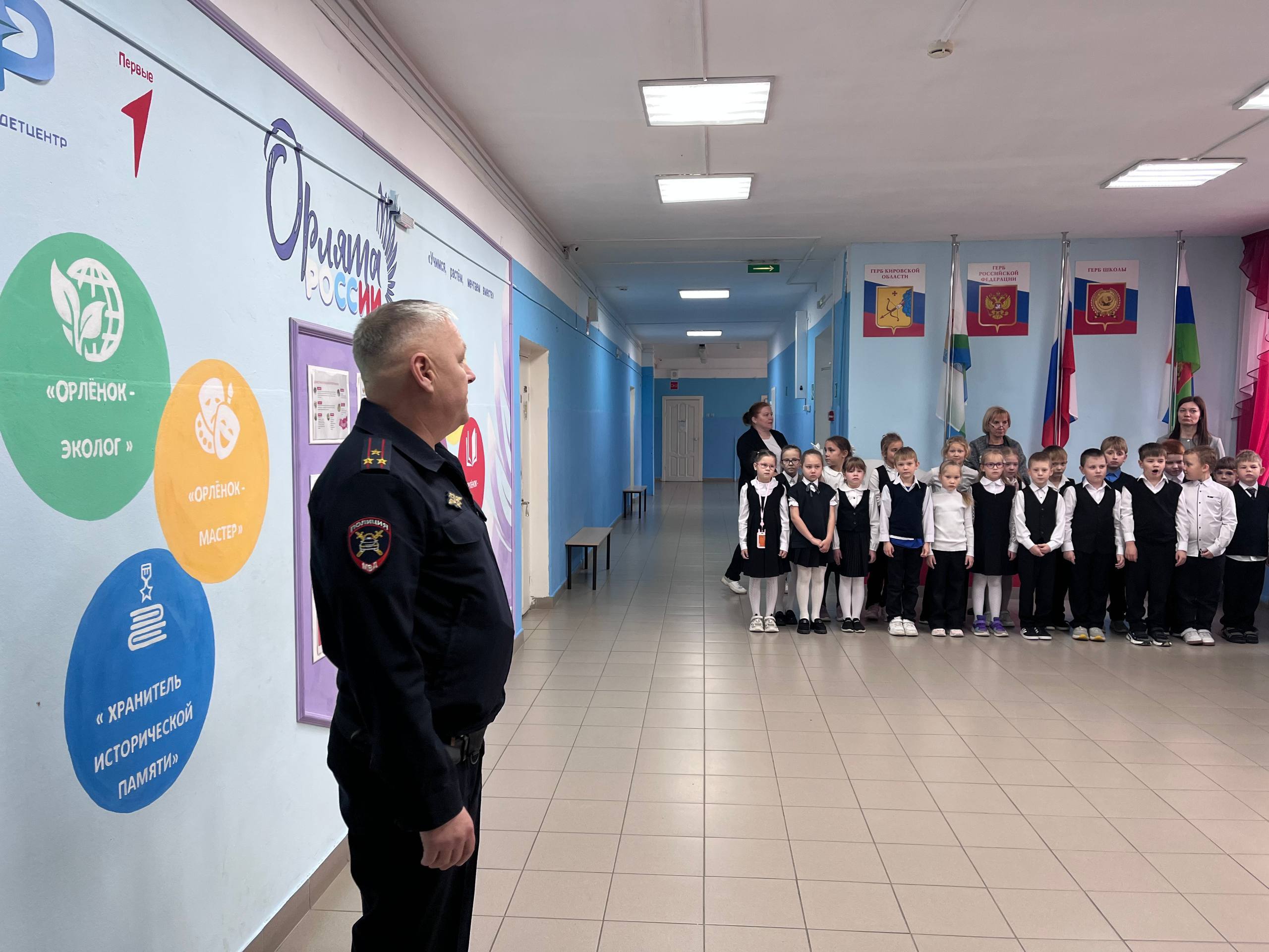 Сегодняшний день для учеников начальных классов школы №68 г. Кирова начался с урока дорожной безопасности, который провел главный государственный инспектор безопасности дорожного движения Кировской области Алексей Владимирович Мокеров. На линейке главный дорожный полицейский напомнил ребятам о неукоснительном соблюдении правил и пожелал безаварийных дорог.