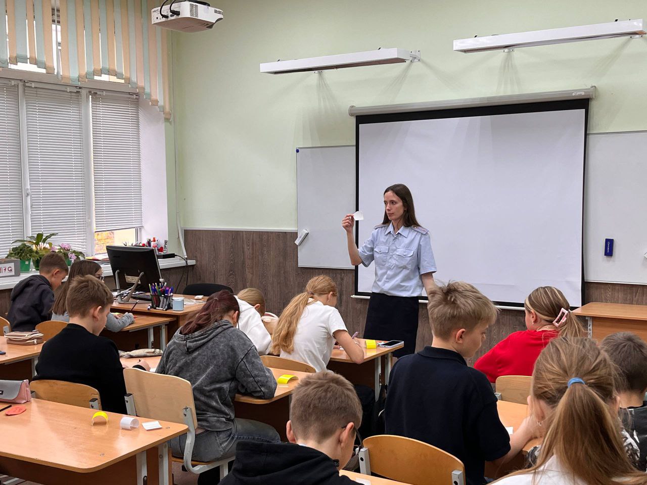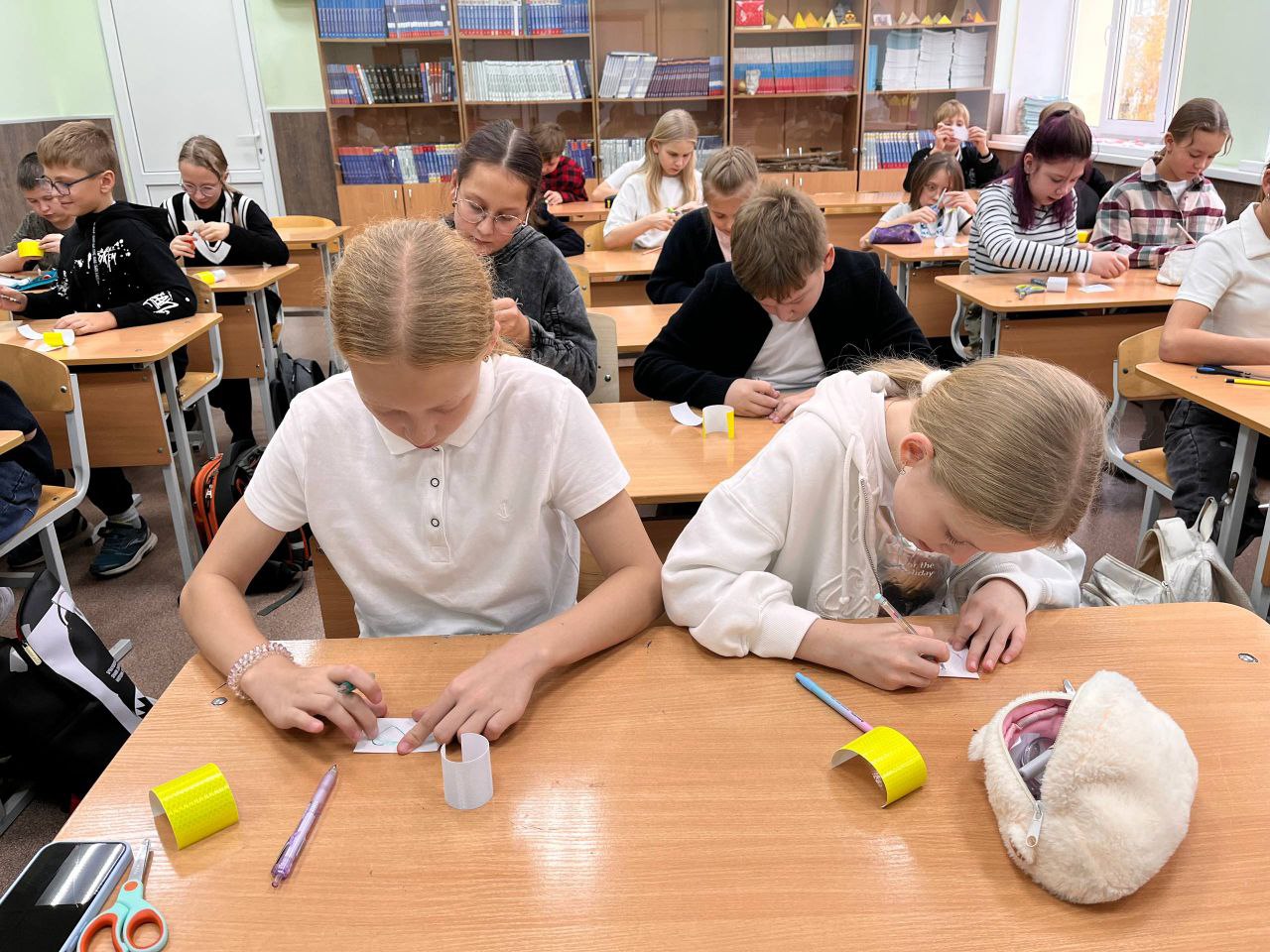 В преддверии школьных каникул сотрудники Госавтоинспекции проводят профилактические беседы с учащимися городских школ и помогают детям стать заметнее на дороге в тёмное время суток.