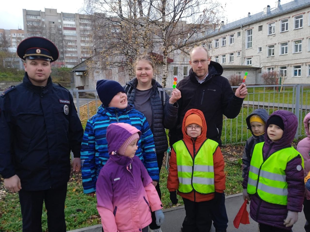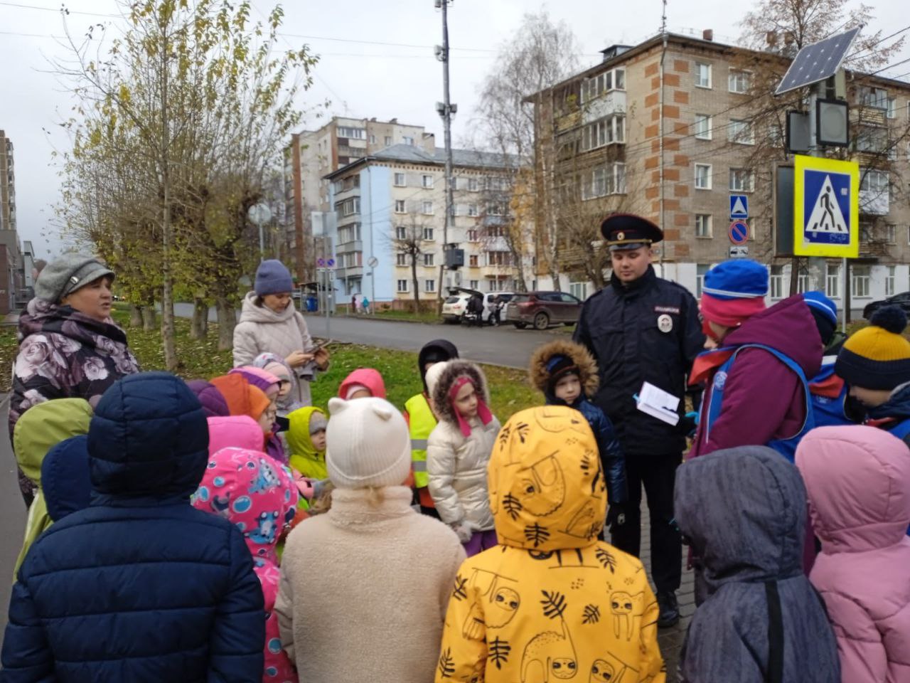 Вблизи нерегулируемого пешеходного перехода инспектор наглядно показал детям последовательность действий: