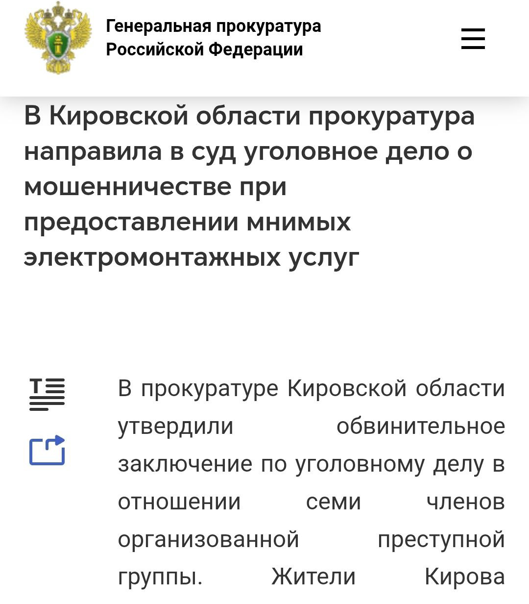 В прокуратуре Кировской области утверждено обвинительное заключение по уголовному делу в отношении 7 членов организованной преступной группы. Жители Кирова обвиняются по ч. 4 ст. 159 УК РФ (#мошенничество).
