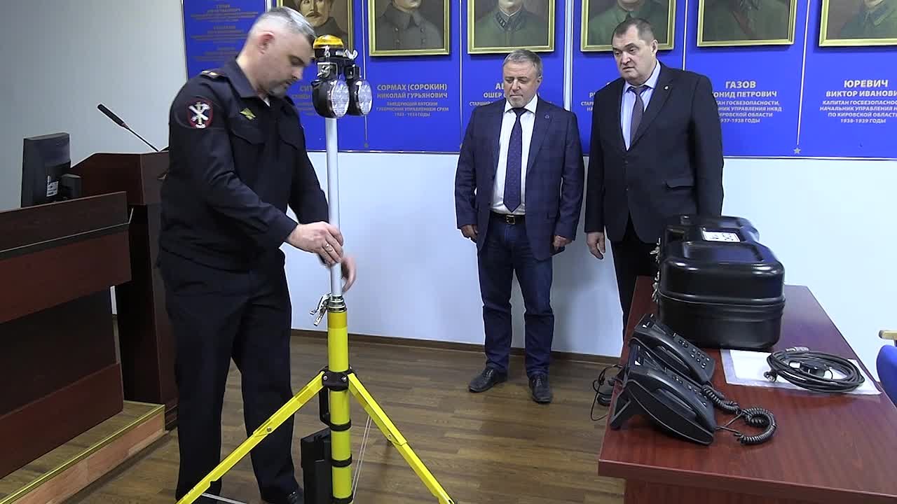 В УМВД России по Кировской области состоялась передача специального осветительного комплекса для работы на местах происшествия. В мероприятии приняли участие начальник областного УМВД Константин Селянин, начальник Управления Госавтоинспекции УМВД Алексей Мокеров и генеральный директор АО ВМП «Авитек» Александр Иванов.
