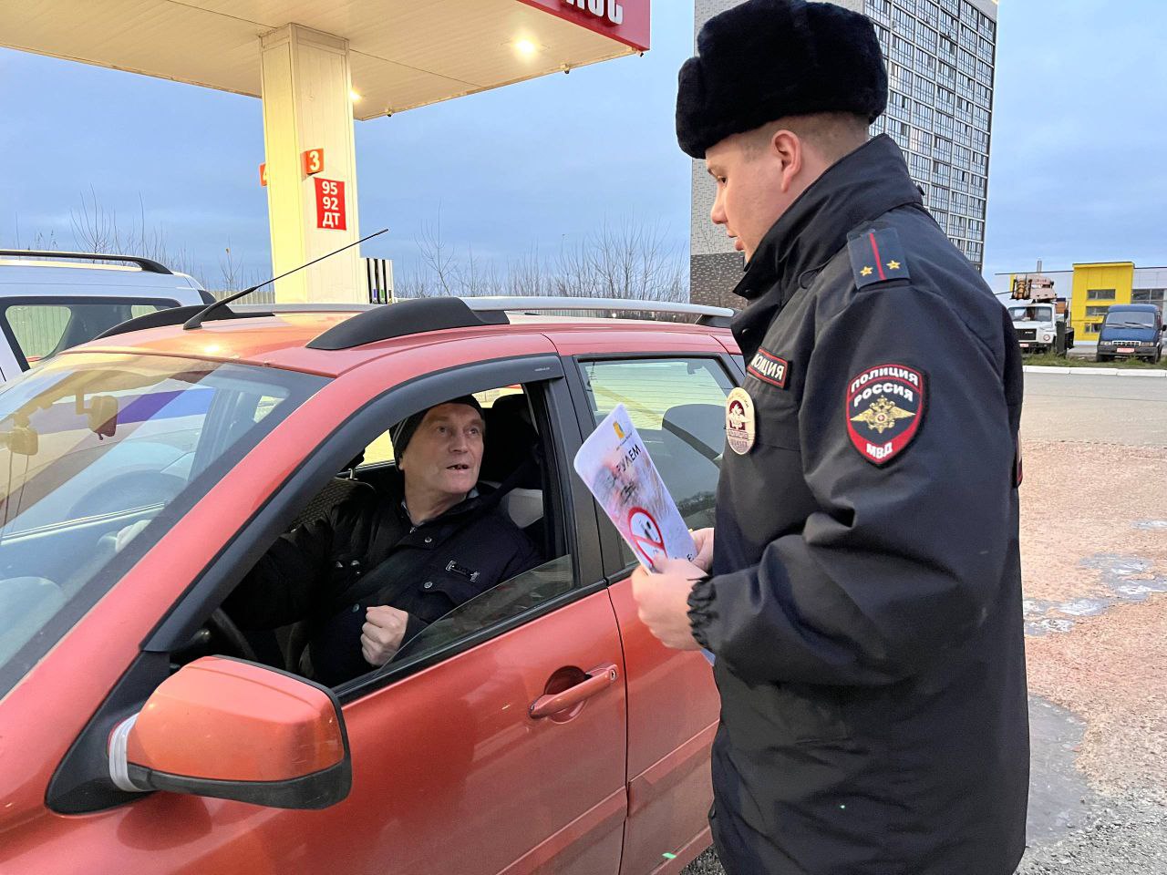 Сотрудники Госавтоинспекции проводят профилактические беседы с водителями на АЗС