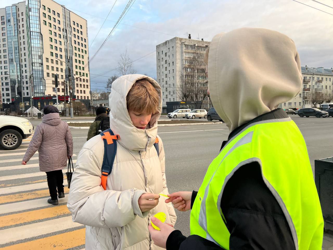 В городе Кирове на одном из оживленных пешеходных переходов сотрудники Госавтоинспекции совместно с активистами из числа студентов Вятского государственного колледжа профессиональных технологий управления и сервиса провели информационно-пропагандистскую акцию, направленную на профилактику ДТП с участием пешеходов.