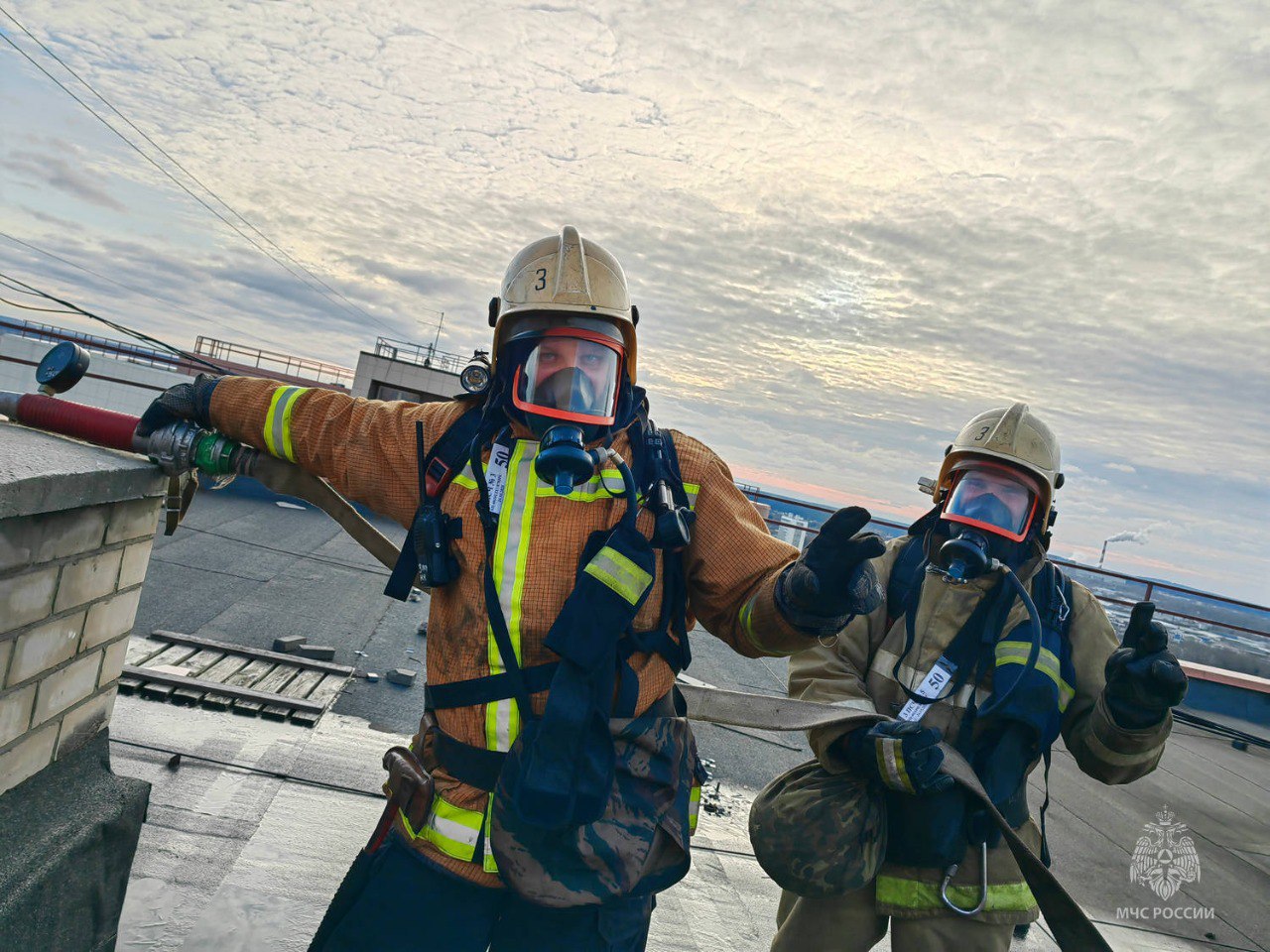 На фото: сотрудники 3-й пожарно-спасательной части города Кирова во время тренировки на высотном здании.