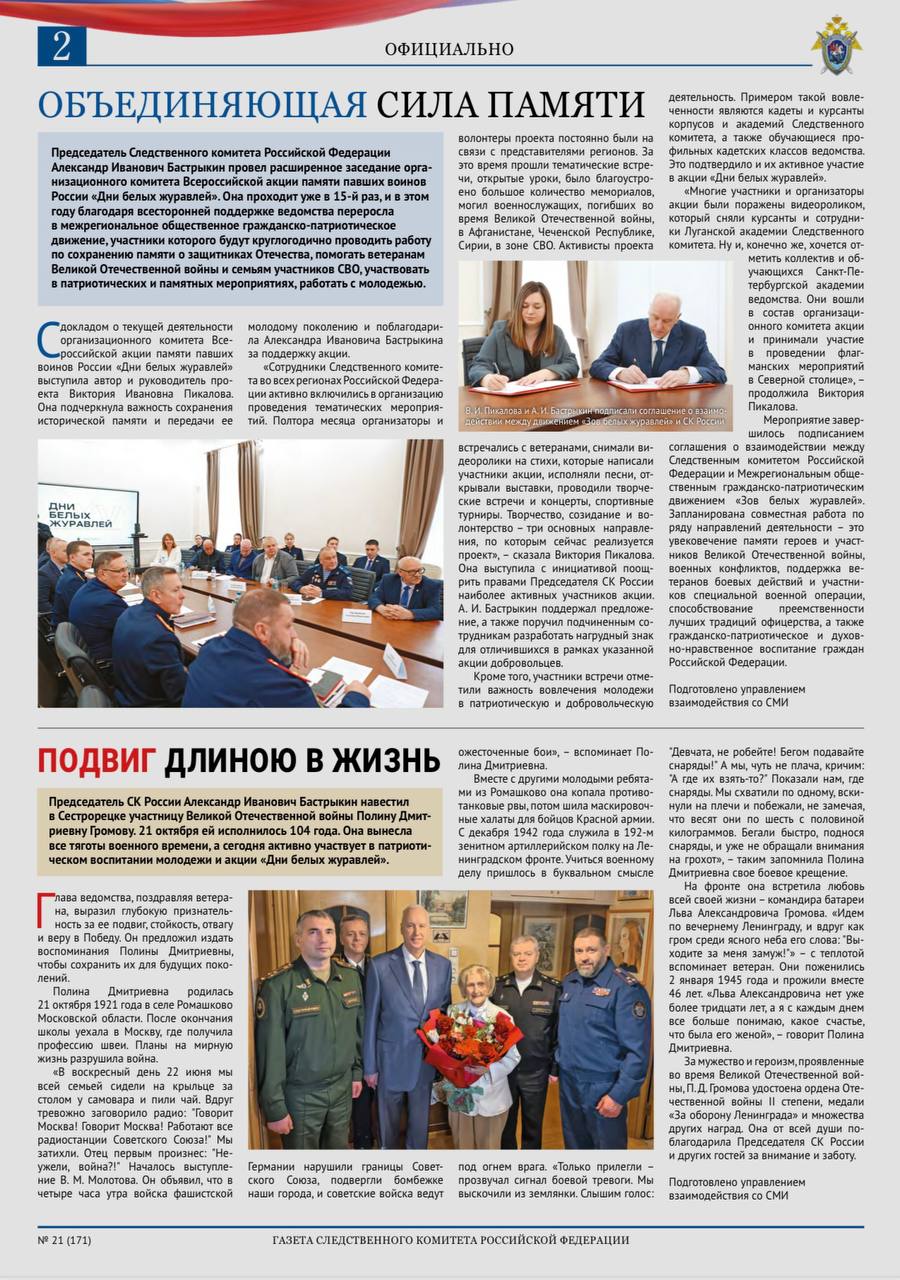На официальном сайте СК России размещен очередной выпуск газеты «Следственный комитет России» № 21 (171) от 17 ноября 2025 года