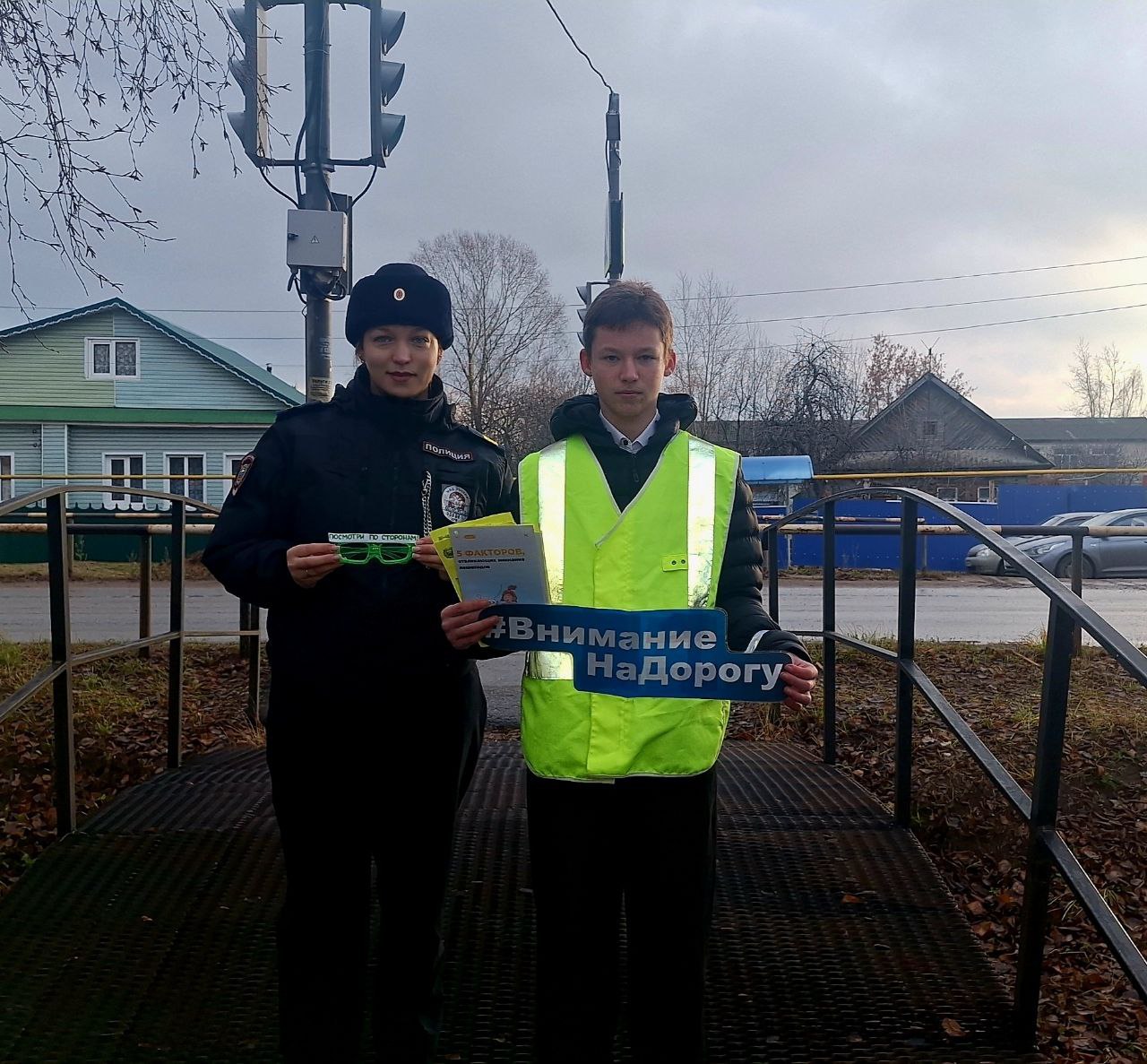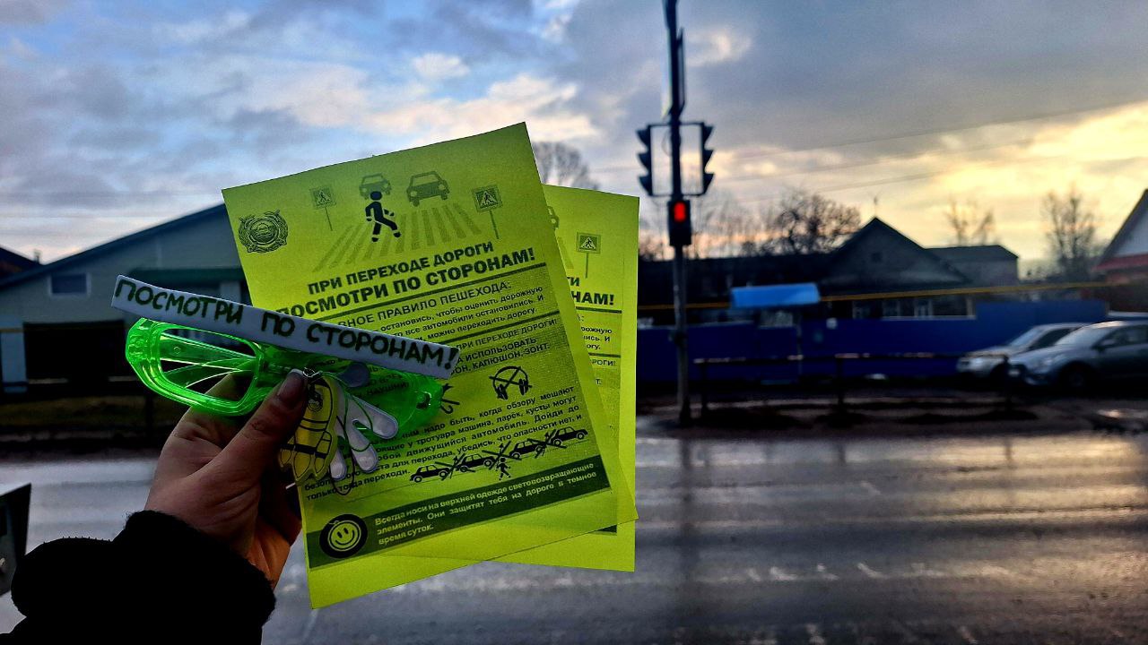 Пешим участникам дорожного движения напомнили о необходимости использования световозвращающих элементов. Всем участникам акции были вручены тематические памятки и световозвращатели.
