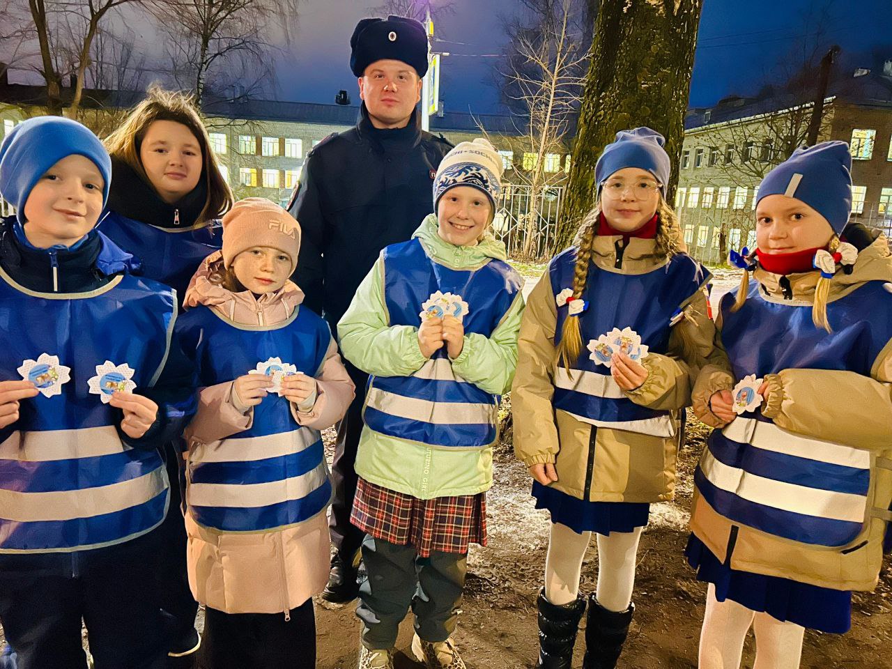 Вторая группа «ЮИД в действии» - учащиеся - участники семинара вместе с сотрудником Госавтоинспекции отправились на улицы города с целью раздачи тематических световозвращателей.