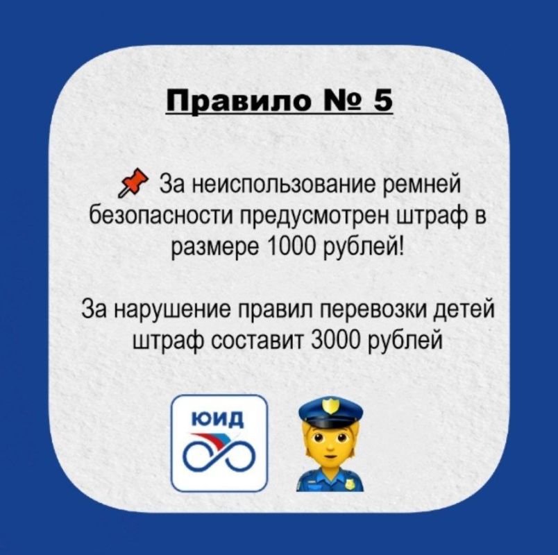 Ответственность за нарушения правил перевозки детей (ст. 12.23 ч. 3 КоАП РФ):– Штраф для водителя — 3 000 рублей.
