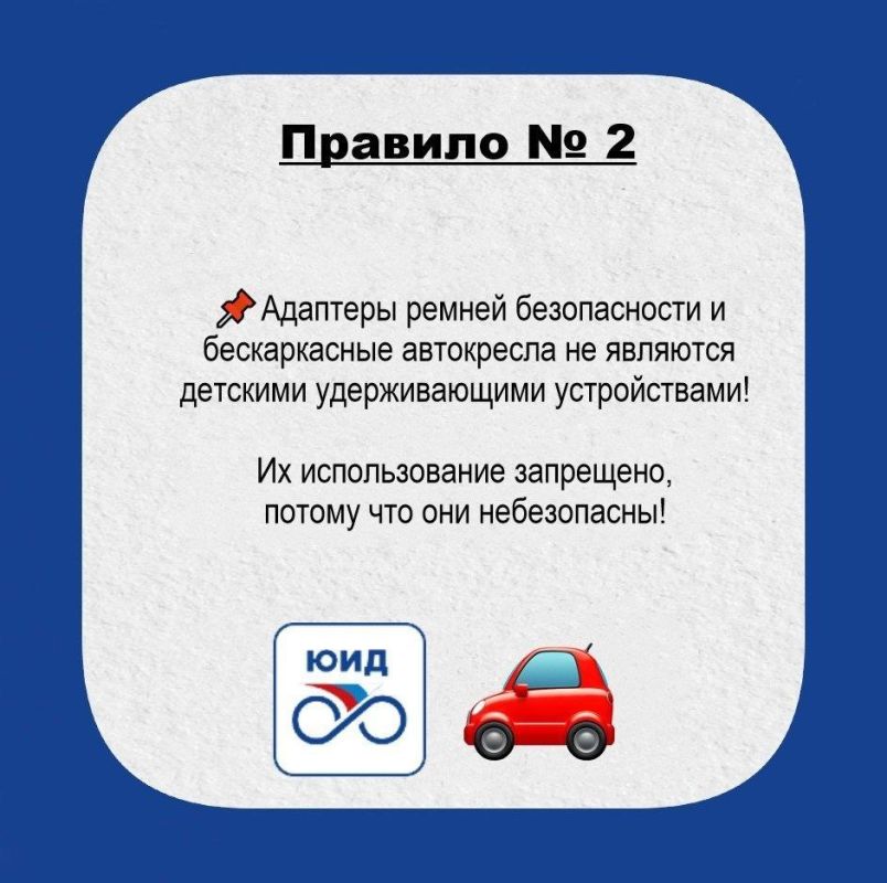 Дети до 7 лет перевозятся только в детских удерживающих устройствах, соответствующих весу и росту ребёнка.