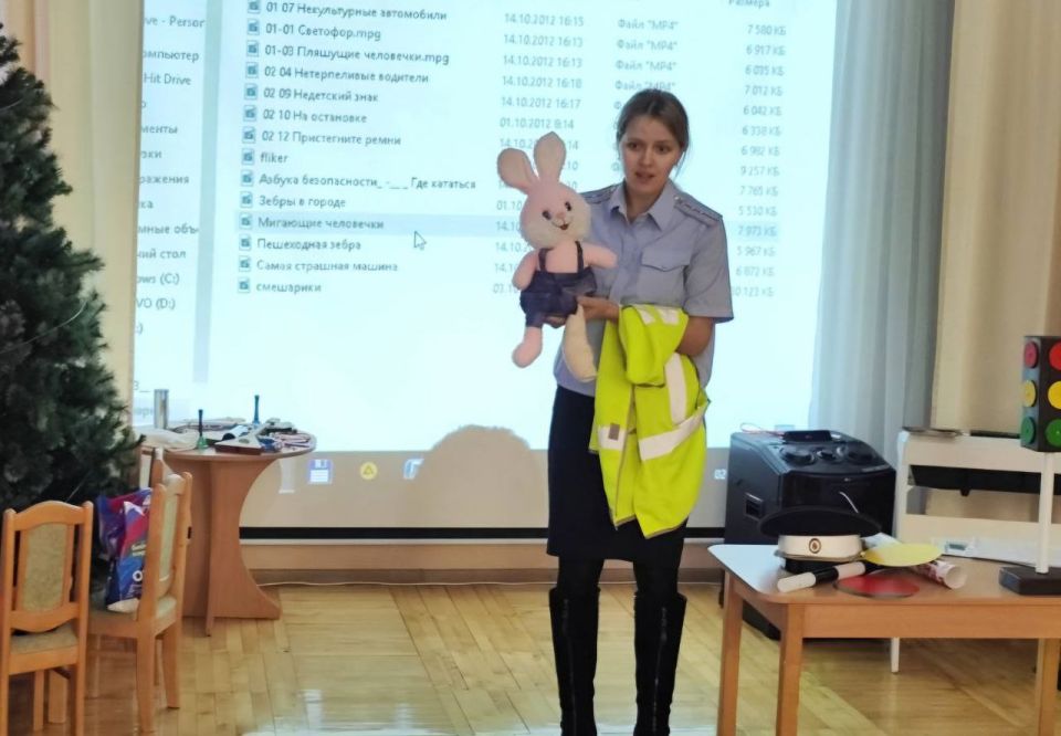 Инспектор в увлекательной форме напомнила малышам основные правила безопасности на дороге.