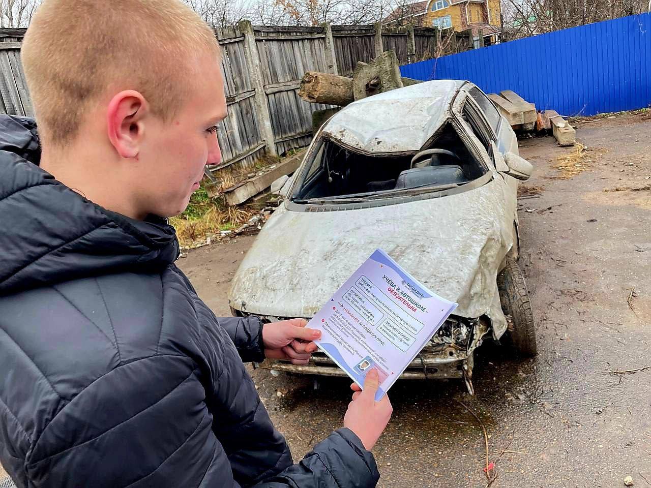 Для дополнительной мотивации к правильной и безопасной манере управления транспортом, автоинспекторы провели для будущих водителей Вятскополянского района экскурсию «Галерея разбитых судеб». Место экскурсии - стоянка автомобилей после различных аварий.