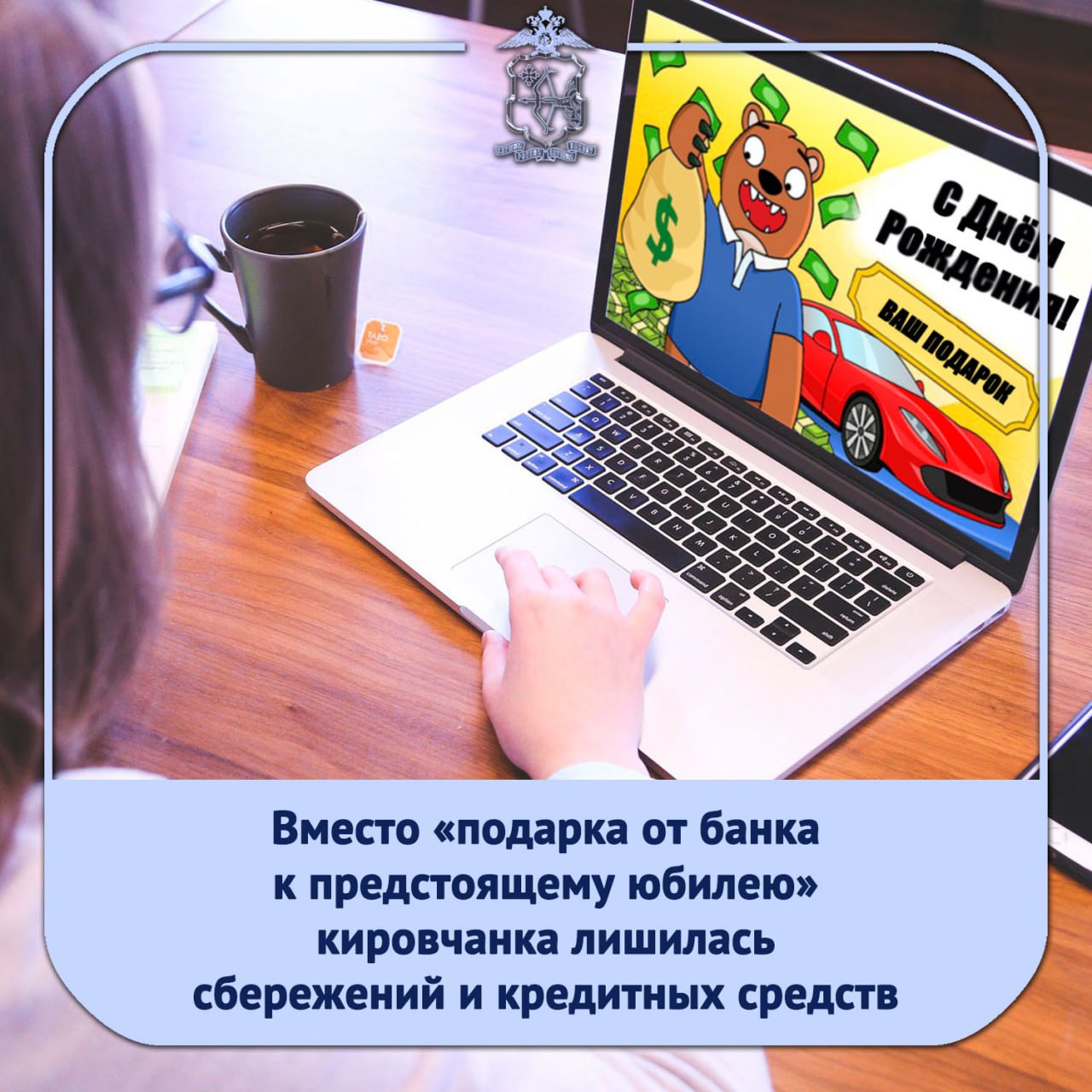Кировчанке накануне её 70-летия в соцсети написала знакомая с предложением помочь получить в подарок от банка 11,5 тысяч рублей. Для этого по просьбе приятельницы потерпевшая назвала 6 последних цифр банковской карты и код из смс.