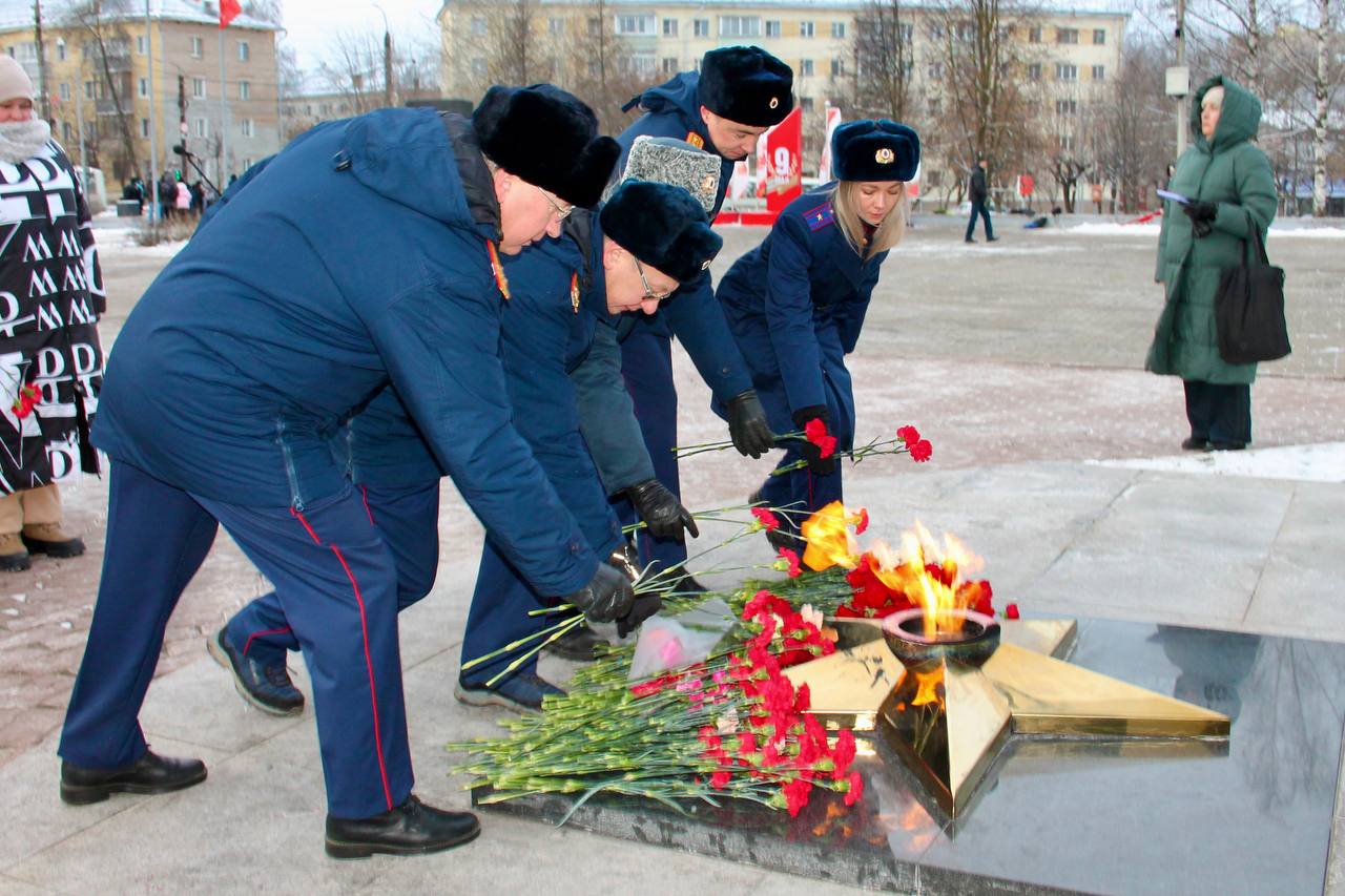 Офицеры СК России почтили память павших Героев Отечества минутой молчания и возложили цветы к мемориалу «Вечный огонь».