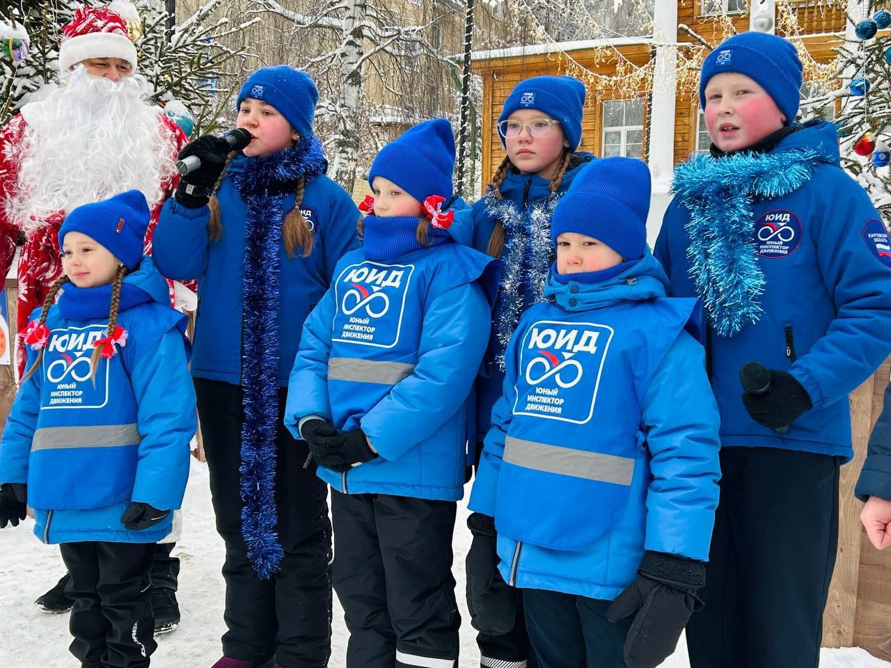 Всех участников мероприятия поздравил с наступающим праздником Дед Мороз, провел интересные конкурсы, игры по ПДД для детей и вручил всем присутствующим полезные подарки.