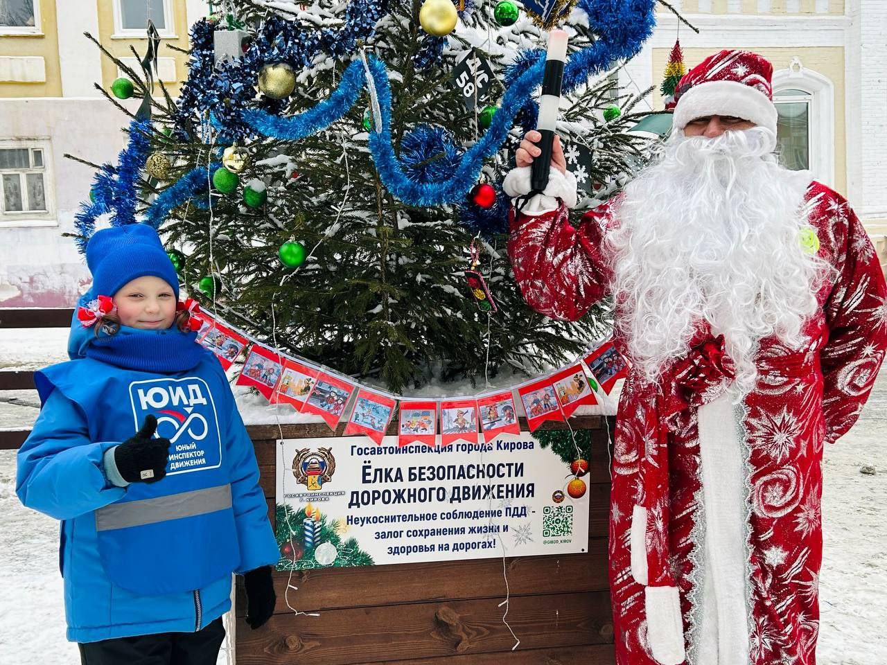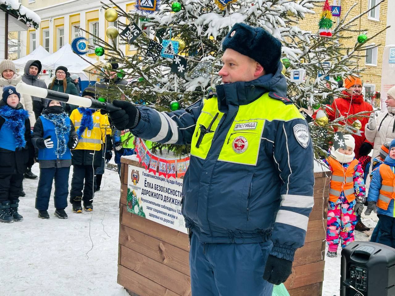 В минувшие выходные дни на улице Спасской областного центра прошло торжественное открытие новогодней елки, украшенной игрушками в виде дорожных знаков. Юные инспекторы дорожного движения г.Кирова заранее изготовили тематические украшения на елку. Развешивая их, и ребята, и полицейские загадывали желания, главное из которых – чтобы для каждого Новый год был счастливым и безопасным.