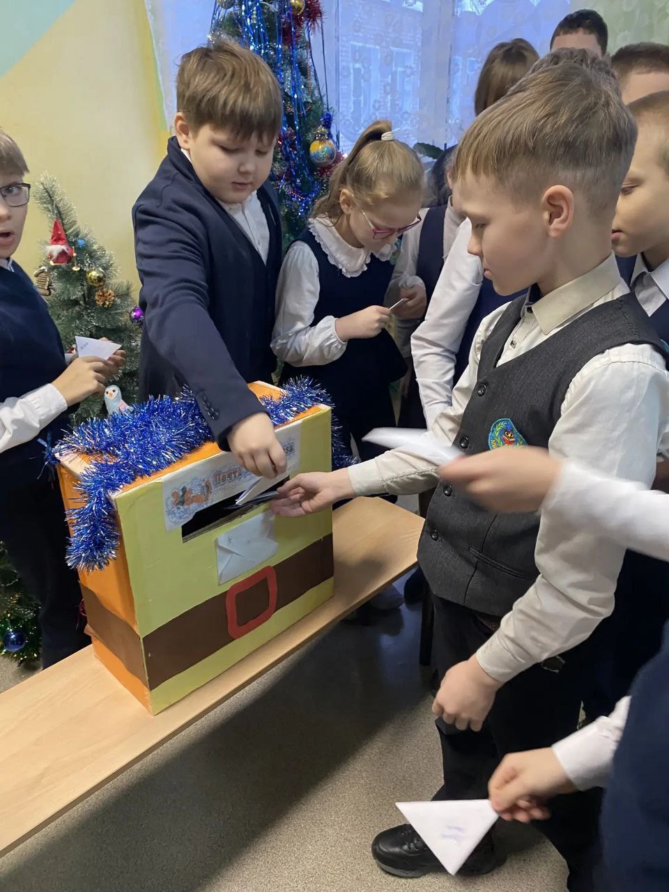 Далее совместно с автоинспекторами каждый ребенок написал письмо Деду Морозу с важными пожеланиями о безопасности на дорогах и отправил его с помощью специального почтового ящика.