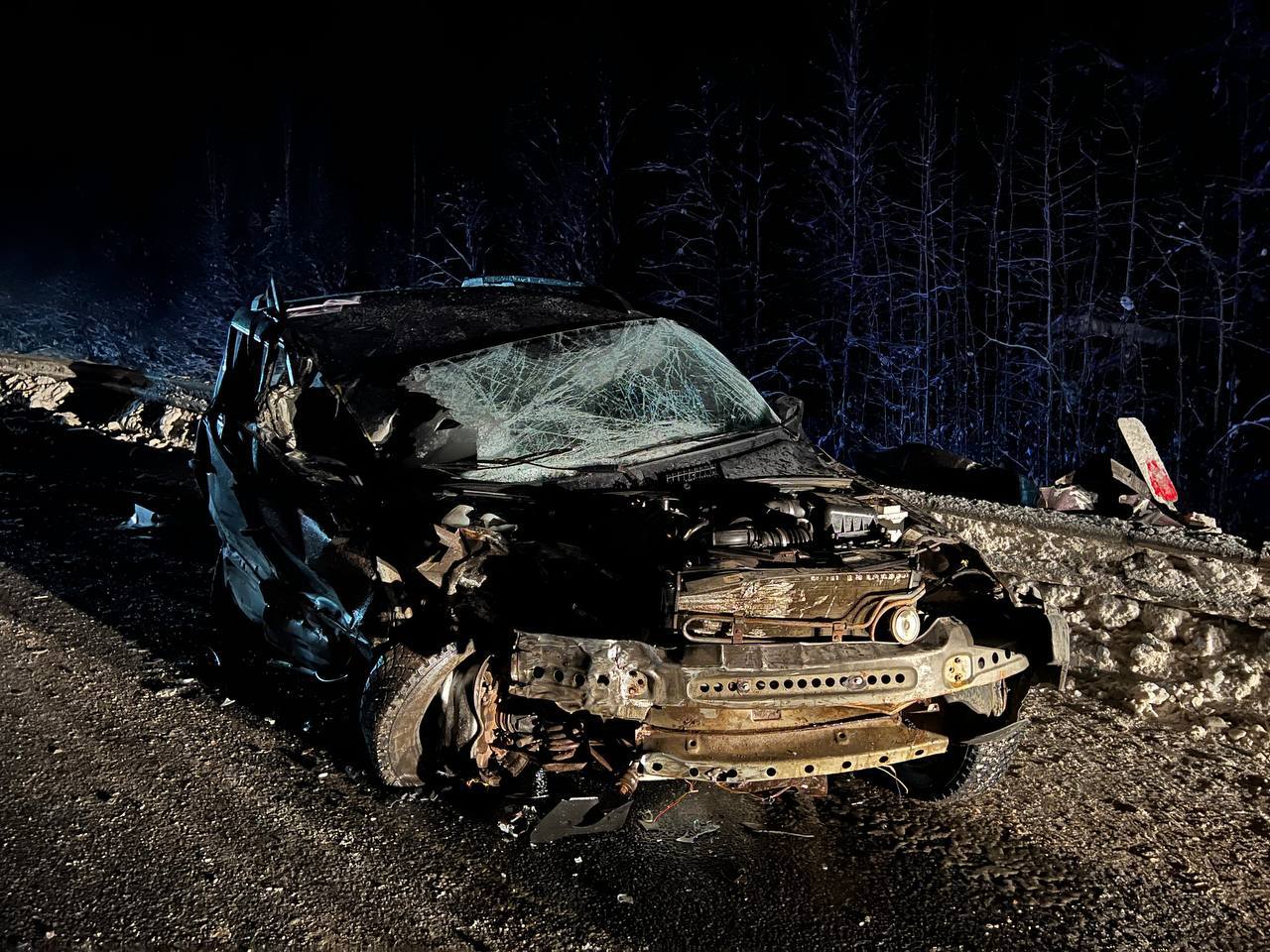 На месте ДТП работают сотрудники полиции, устанавливаются причины и условия происшествия, движение по трассе частично ограничено.