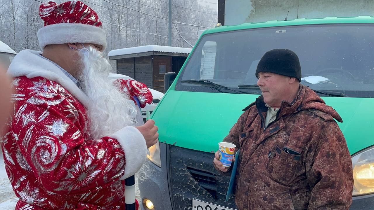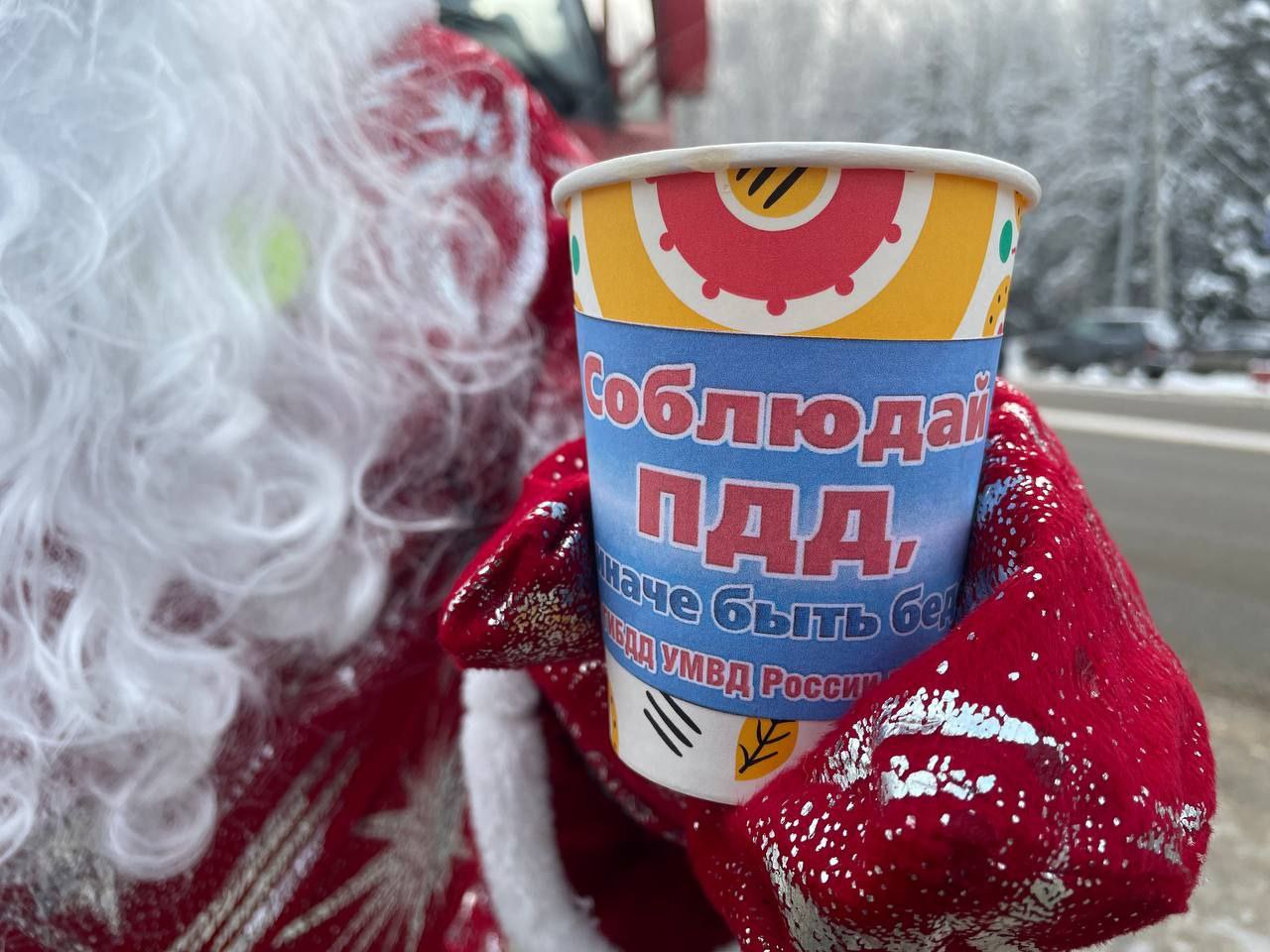 В преддверии Новогодних праздников автоинспекторы вручают водителям тематические стаканчики с чаем!