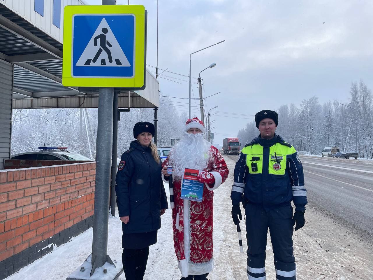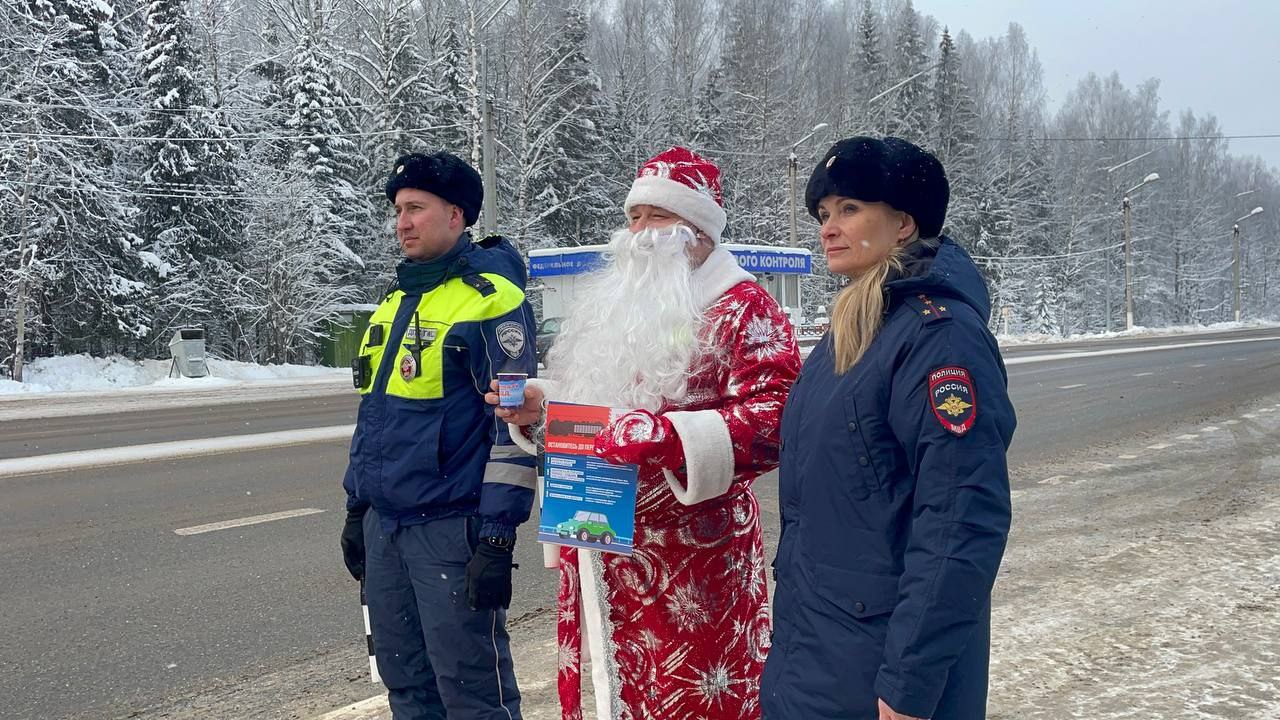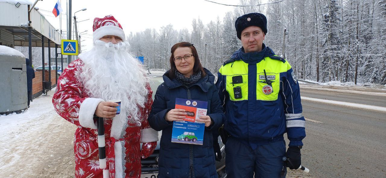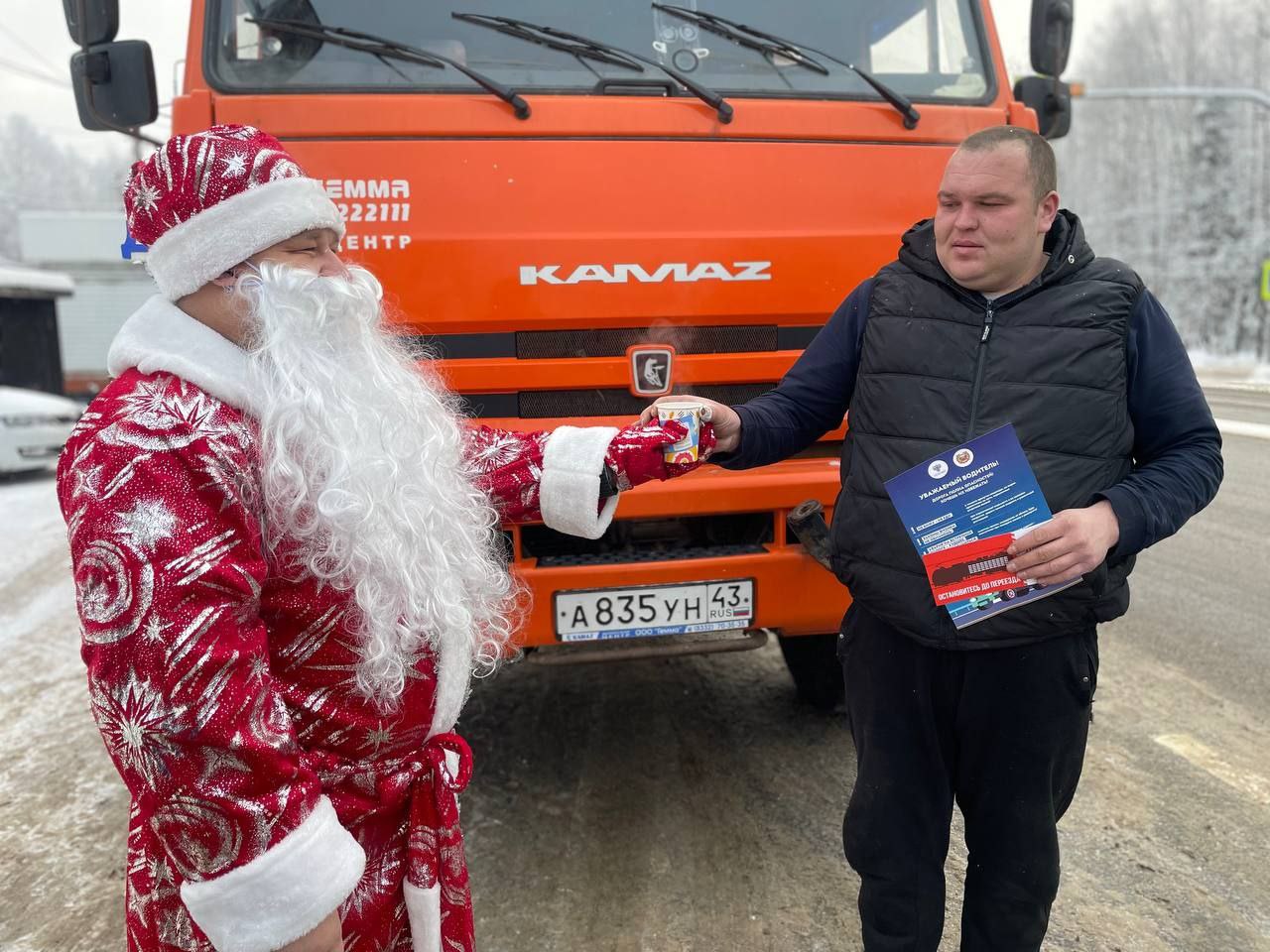 С целью профилактики дорожно-транспортных происшествий и исключения нетрезвого вождения сотрудники Госавтоинспекции г.Кирова и Полицейский Дед Мороз провели профилактическую акцию "В Новый год без ДТП"