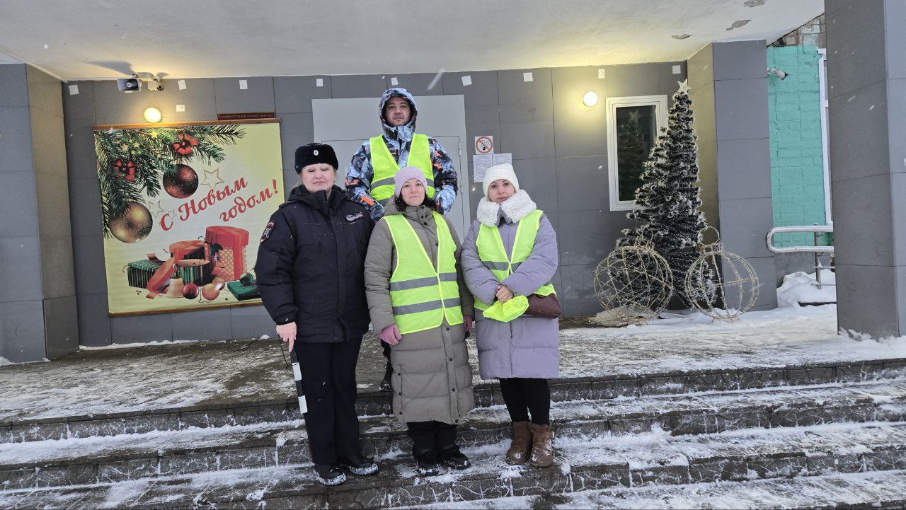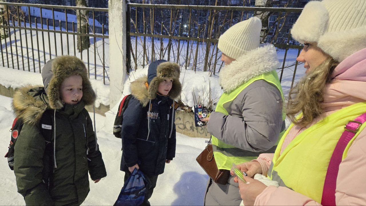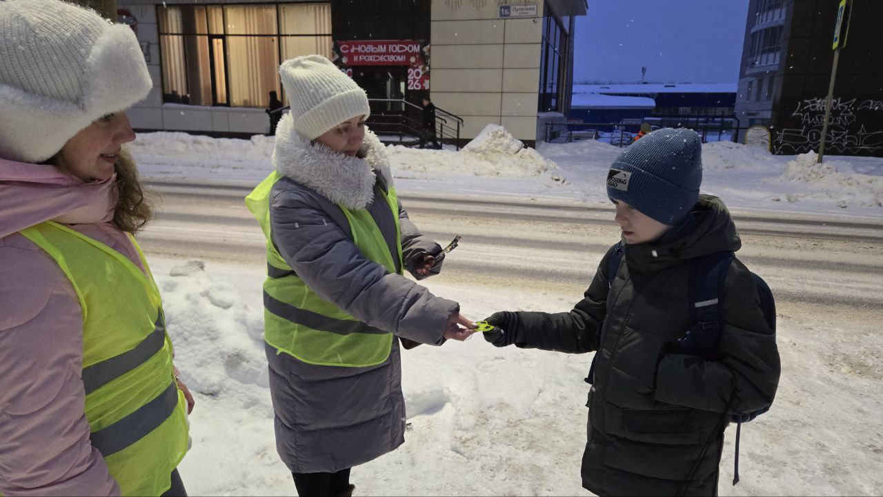 В ходе дежурства родительские патрули вручали школьникам световозвращающие элементы