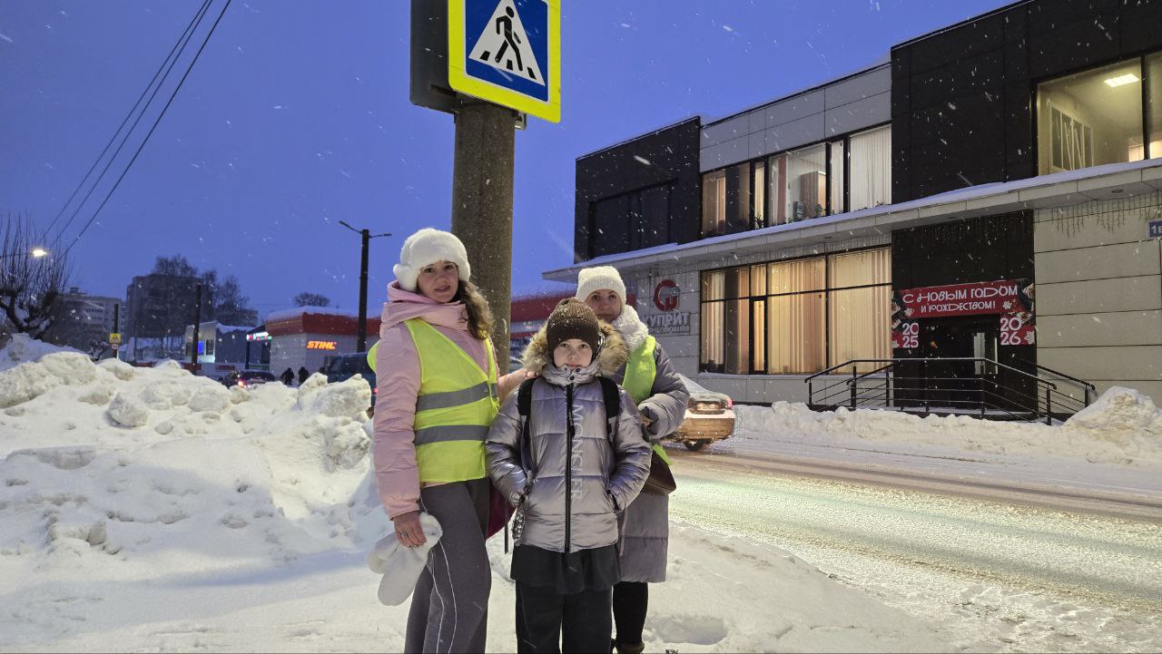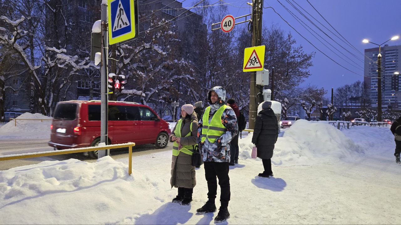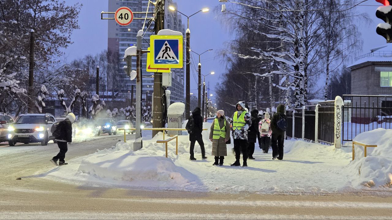 В Кирове активные родители учеников школы № 59 организовали дежурство у пешеходных переходов, расположенных вблизи школы.