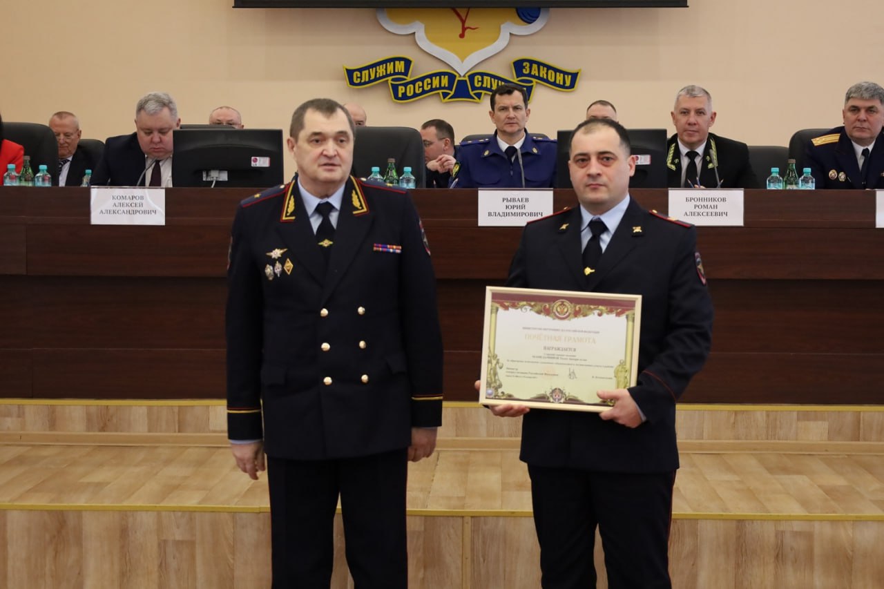 В ходе заседания коллегии УМВД России по Кировской области по итогам 2025 года состоялось награждение отличившихся сотрудников. За успехи в службе начальник Управления генерал-майор полиции Константин Селянин вручил полицейским награды. В их числе медаль Российской Федерации «За отличие в охране общественного порядка», медали МВД России «За доблесть в службе», И.Д. Путилина, почетные грамоты и благодарности Министерства.
