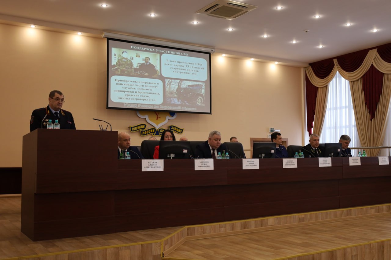 22 января 2026 года в ходе заседания коллегии под председательством начальника УМВД генерал-майора полиции Константина Селянина подведены итоги оперативно-служебной деятельности Управления МВД России по Кировской области за 2025 год. В работе приняли участие прокурор Кировской области Юрий Рываев, начальник СУ СК РФ по Кировской области Султан Оразаев, заместитель председателя Общественного совета при УМВД Сергей Смирнов руководители региональных управлений правоохранительных структур и представители органов власти.