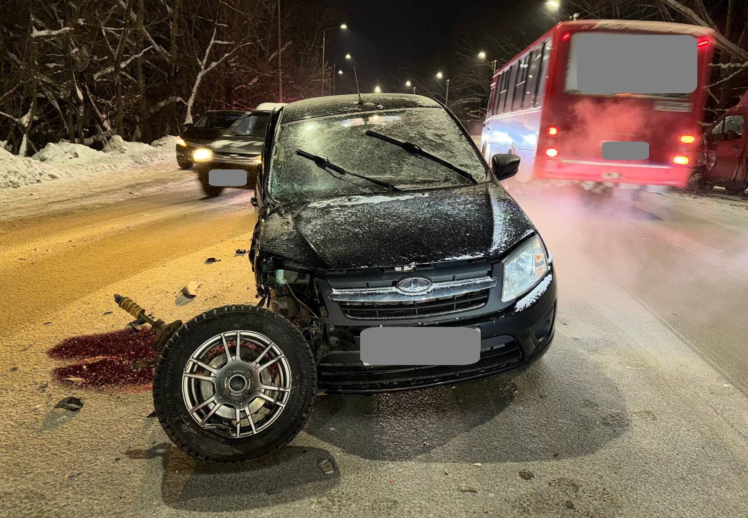 г. Кирова произошло столкновение автомобилей «Лада Гранта» под управлением 29-летней женщины и ГАЗ под управлением 55-летнего мужчины. От столкновения у автомобиля «Лада Гранта» вырвало элемент привода и откинуло на двигающийся автомобиль «Хендай Солярис» под управлением 41-летнего мужчины. Автомобиль ГАЗ после столкновения совершил наезд на опору ЛЭП. В результате происшествия водители автомобилей ГАЗ и «Лада Гранта» получили травмы. По факту ДТП проводится проверка, выясняются причины и условия происшествия.