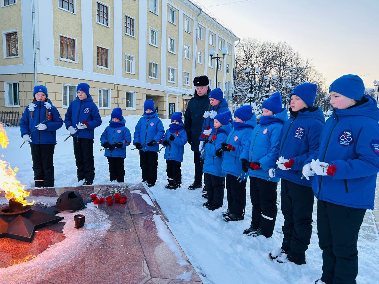 Юные инспекторы движения и сотрудники полиции склоняют головы перед всеми, кто защищал город Ленинград, спасал жизни, поддерживал друг друга и выстоял!