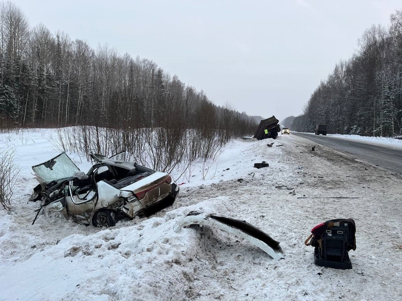 Ранее сообщалось: в феврале 2025 года водитель автомашины «Сканиа» с прицепом на 50-м километре автодороги «Киров – Малмыж – Вятские Поляны», двигаясь в сторону города Малмыж, нарушил правила дорожного движения и эксплуатации транспортного средства, что привело к разрушению сцепного устройства и отрыву прицепа. После этого прицеп выехал на полосу встречного движения, где столкнулся с легковым автомобилем Киа Рио. В результате столкновения 28-летний водитель легковой автомашины и 21-летний пассажир получили травмы, причинившие тяжкий вред здоровью, их дочь, 2023 года рождения, погибла на месте.