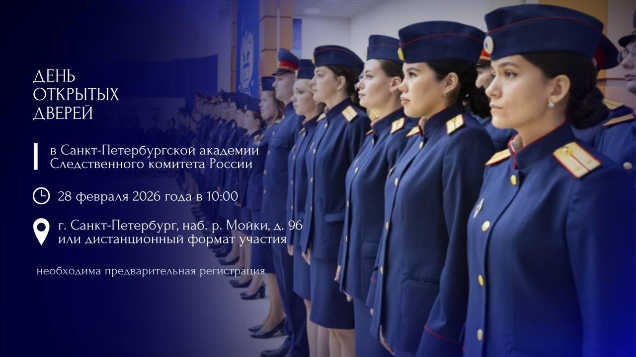 Федеральное государственное казенное образовательное учреждение высшего образования «Санкт-Петербургская академия Следственного комитета Российской Федерации» приглашает абитуриентов, их родителей и всех желающих 28 февраля 2026 года в 10 час. 00 мин. на День открытых дверей.