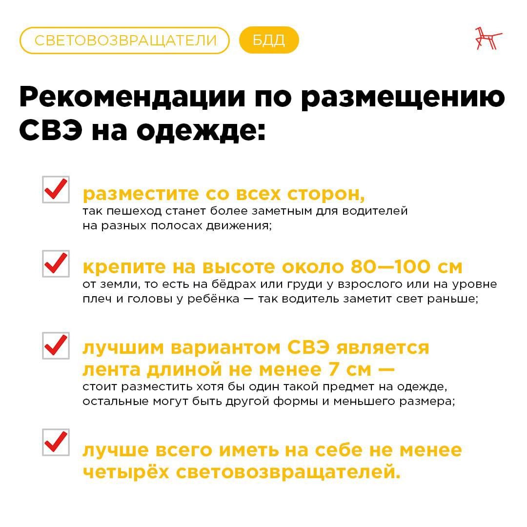 По данным научных исследований применение пешеходами световозвращающих элементов более чем в 6,5 раз снижает риск наезда. Водитель видит пешехода со световозвращателем со значительно большего расстояния, 150 метров вместо 30 м, а при движении с дальним светов – уже на расстоянии 400 метров.