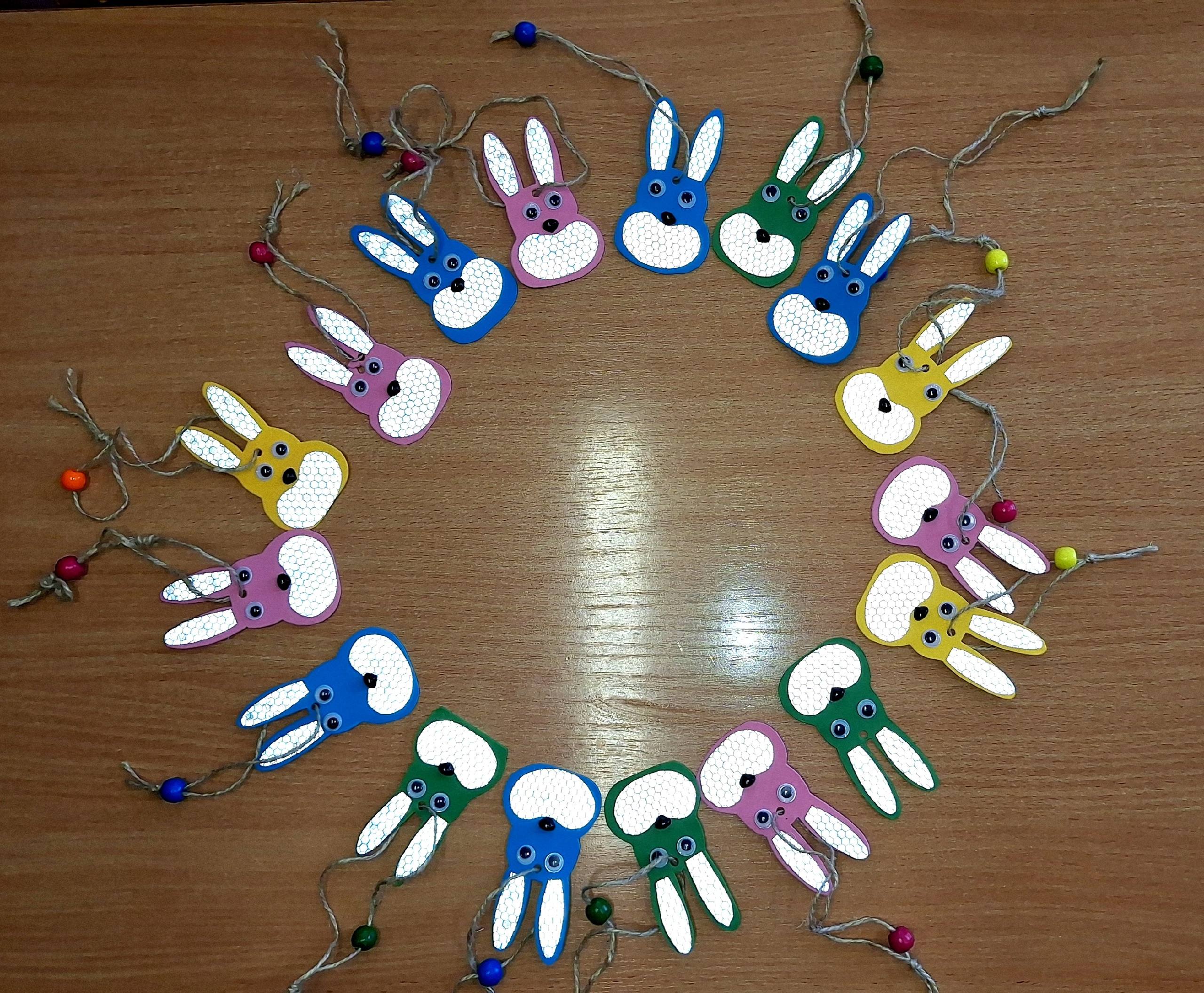 Вооружившись необходимыми подручными материалами в виде карандашей, ножниц, бумаги со световозвращающим эффектом, ребята приступили к созданию столь нужных средств пассивной безопасности. И через некоторое время, обычный картон и листы световозвращающей бумаги превратились в руках детей в световозвращающие подвески.