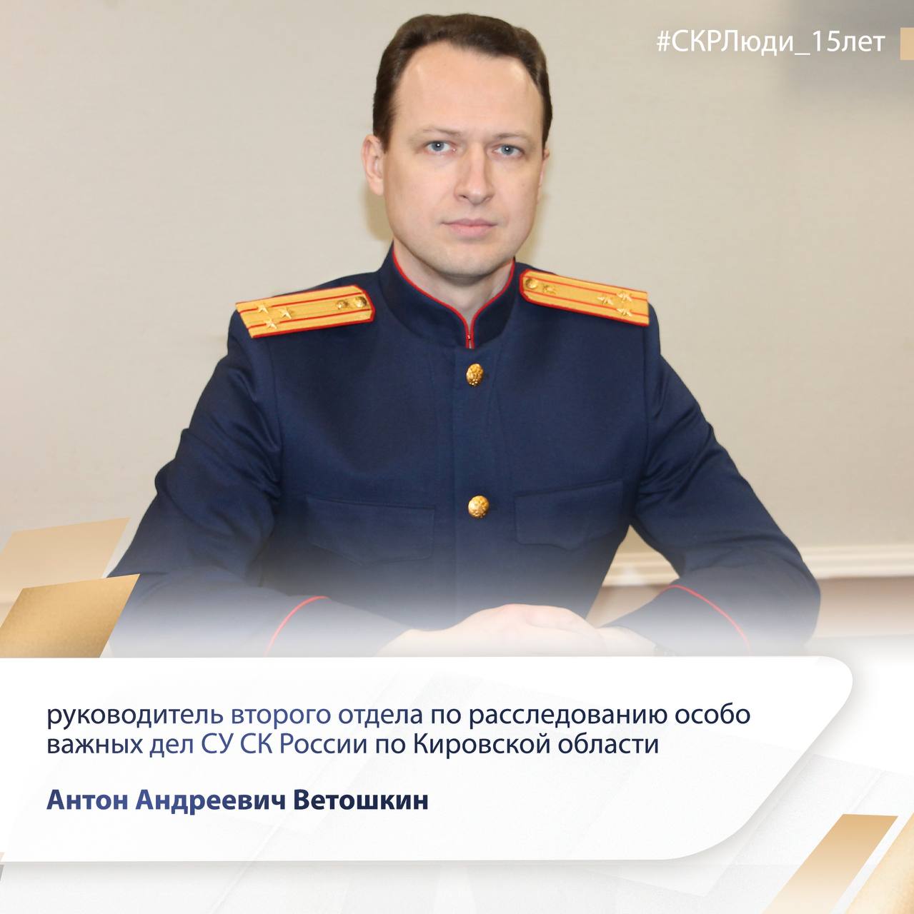 15 В проекте «СКРЛюди_15лет» принимает участие руководитель второго отдела по расследованию особо важных дел СУ СК России по Кировской области Антон Андреевич Ветошкин