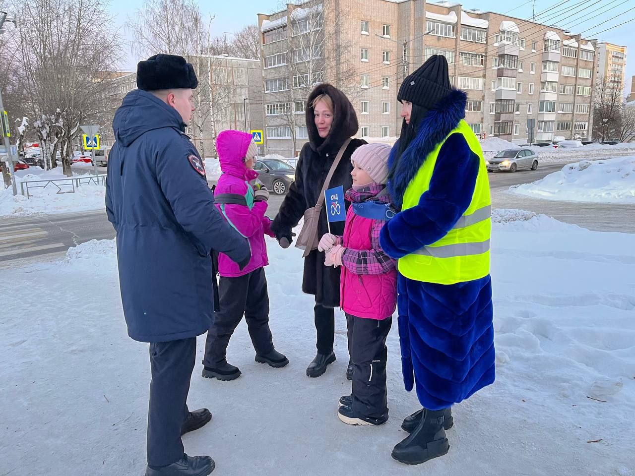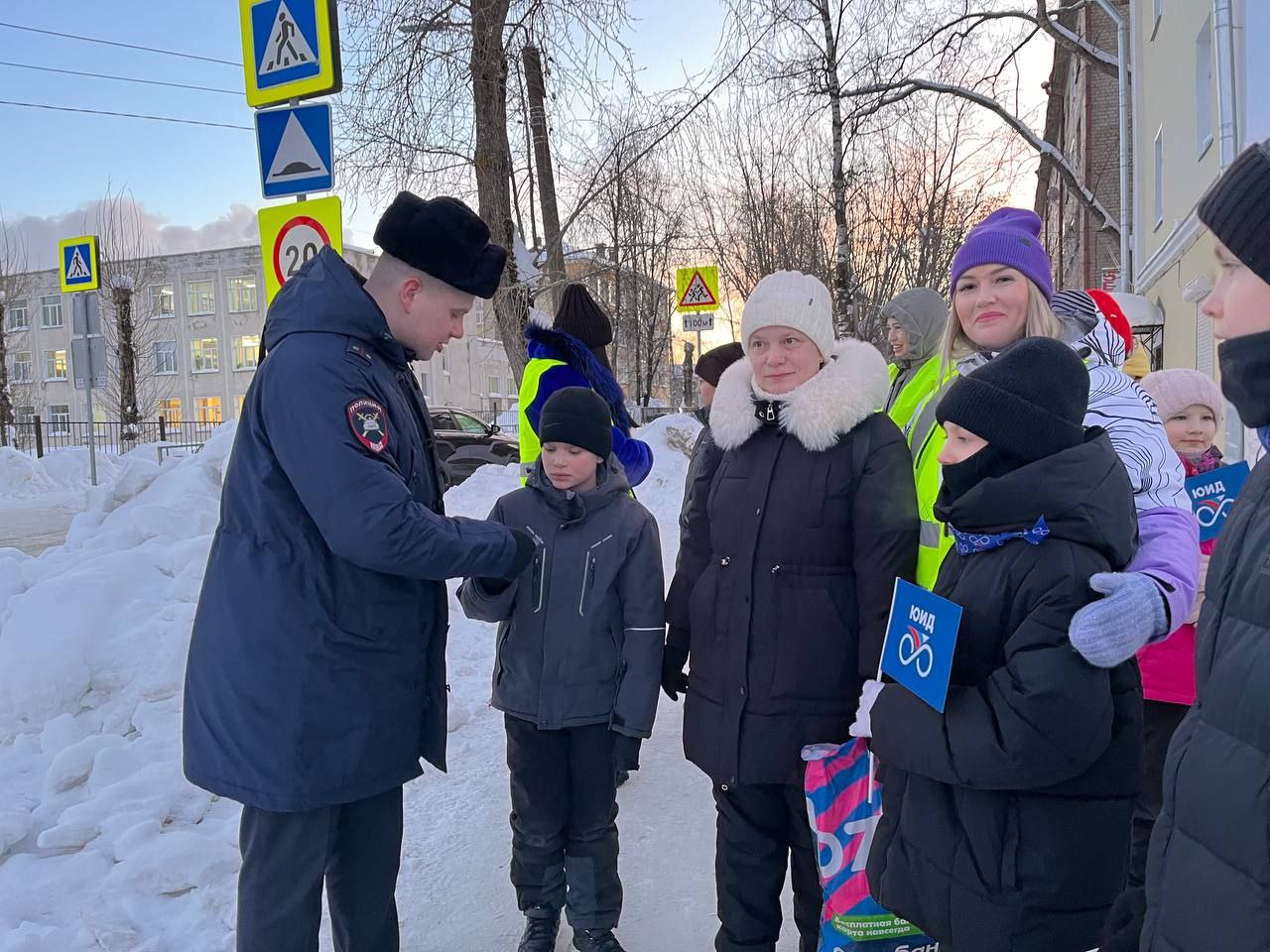 В вечернее время к пешеходным переходам, около образовательных организаций, на дежурство вышли госавтоинспекторы, активные родители и юные инспекторы движения школы №18 г.Кирова.