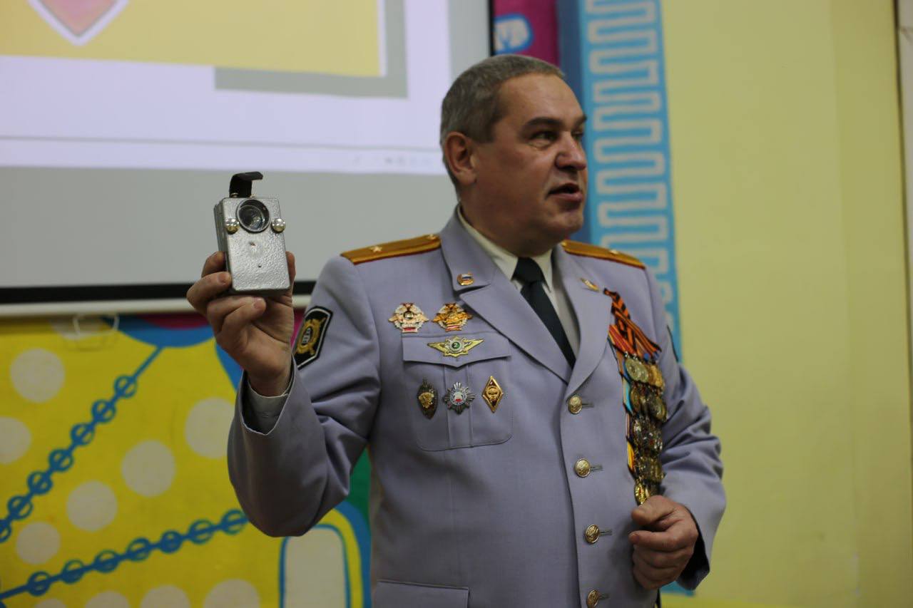 Особый интерес у детей вызвали измерители скорости движения транспортных средств «ДИС», «Фара» и «Барьер», которые были представлены в виде эксклюзивных экспонатов музея. Каждый смог примерить краги и фуражку сотрудника Госавтоинспекции.