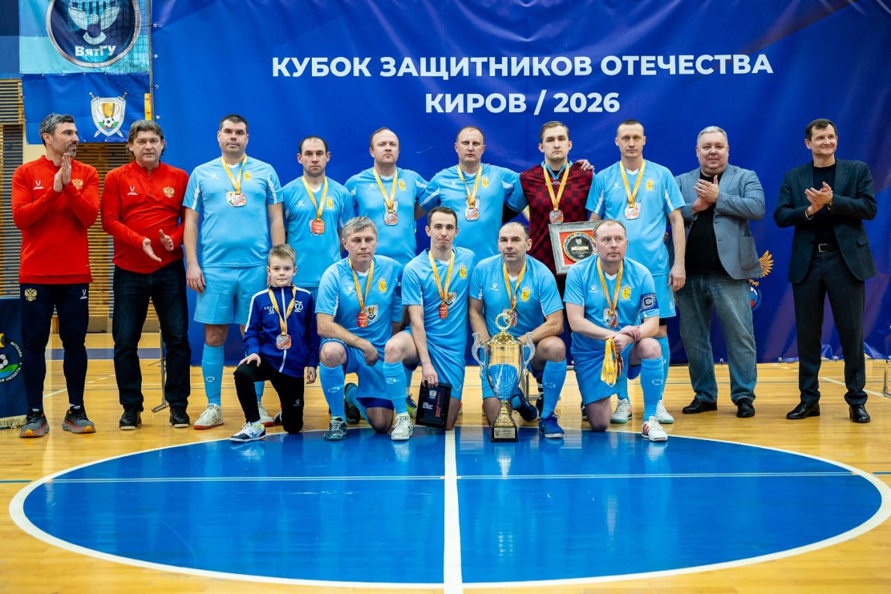 В Кирове состоялся футбольный турнир «Кубок защитников Отечества», в котором приняли участие команды органов власти и правопорядка региона. Мероприятие, приуроченное ко Дню защитников Отечества, прошло при поддержке Российского футбольного союза и ассоциации мини-футбола «Золотое кольцо».