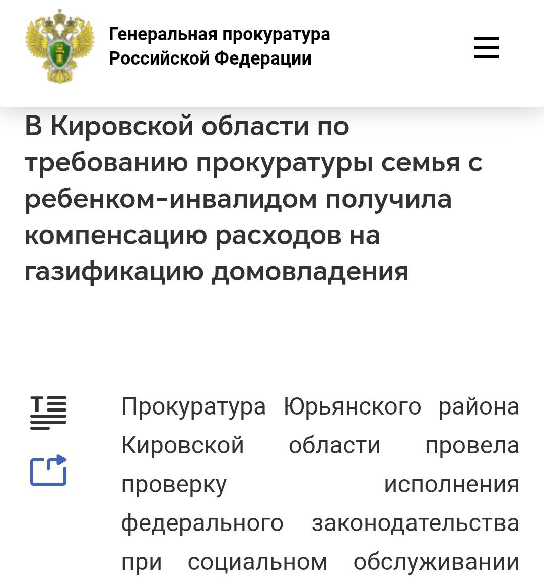 В Кировской области по требованию прокуратуры семья с ребенком-инвалидом получила компенсацию расходов на газификацию домовладения