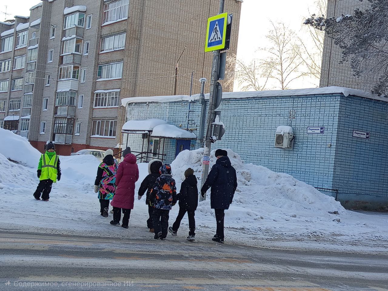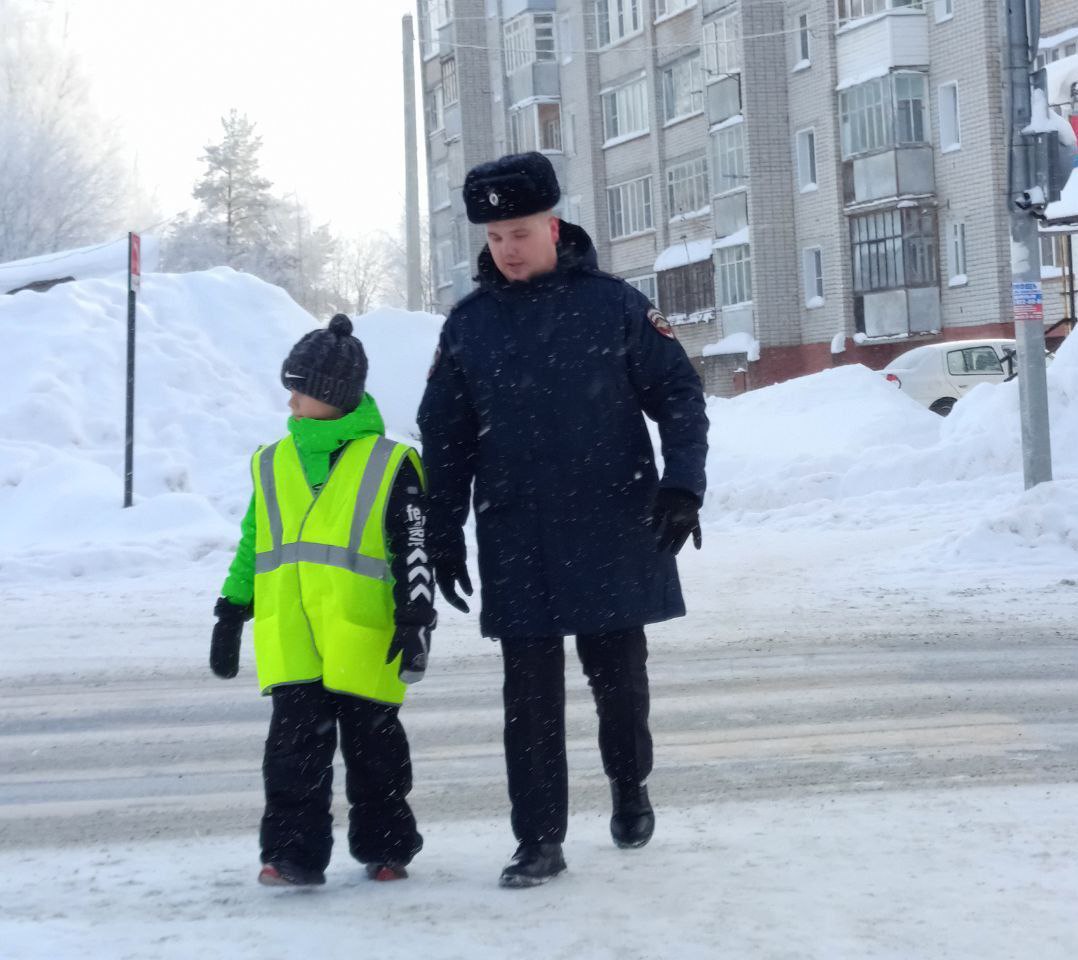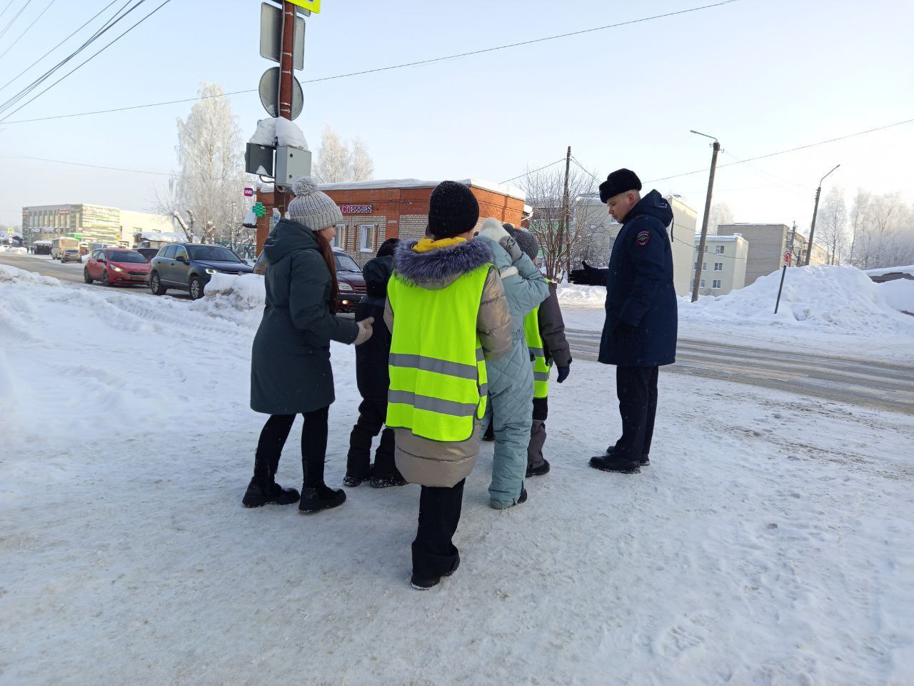 По пути к нерегулируемому пешеходному переходу автоинспекторы обращали внимание школьников на все потенциально опасные объекты: припаркованные автомобили, закрывающие обзор, выезды из дворов, а также на участки, где тротуар прилегает близко к проезжей части.