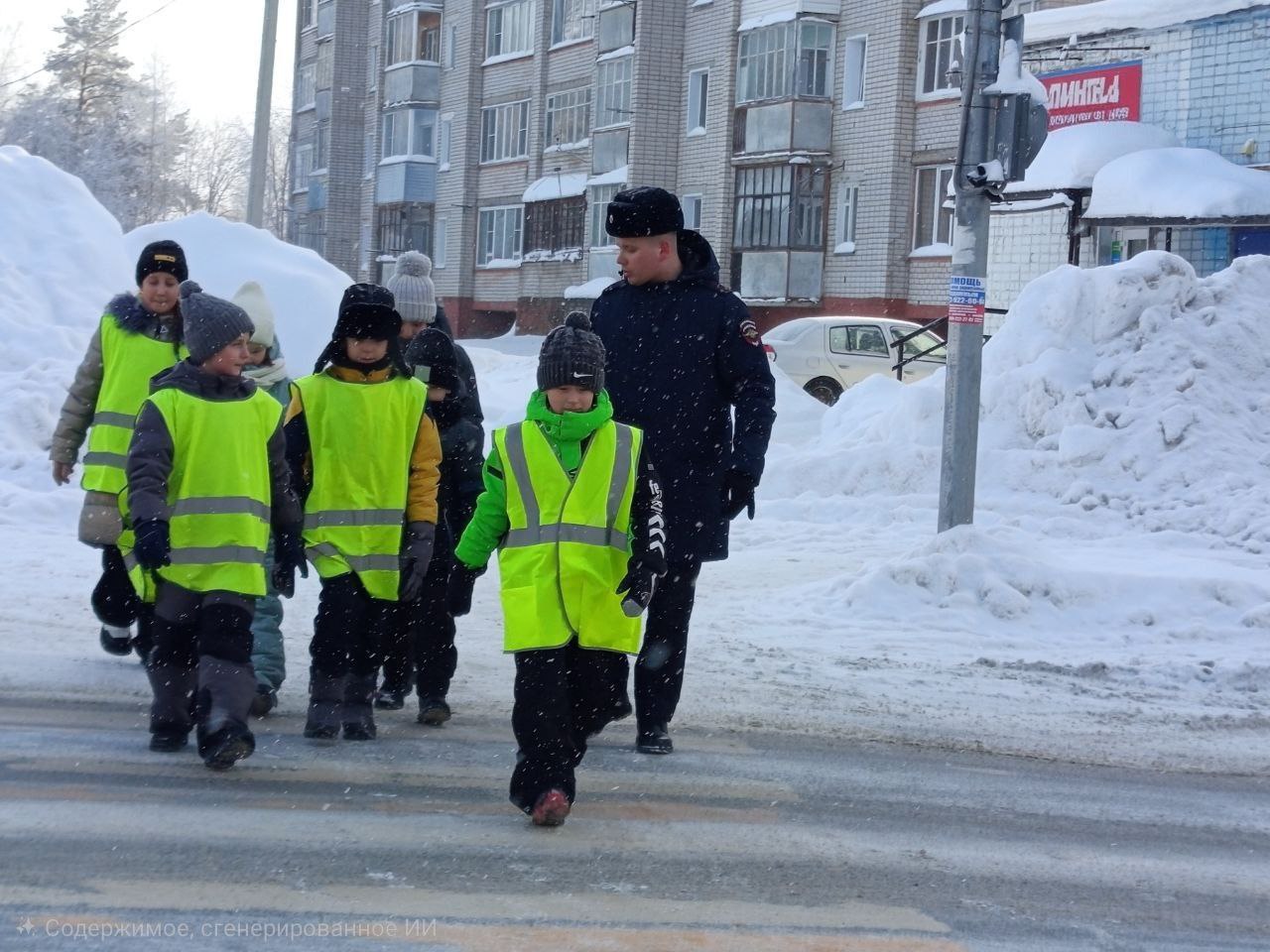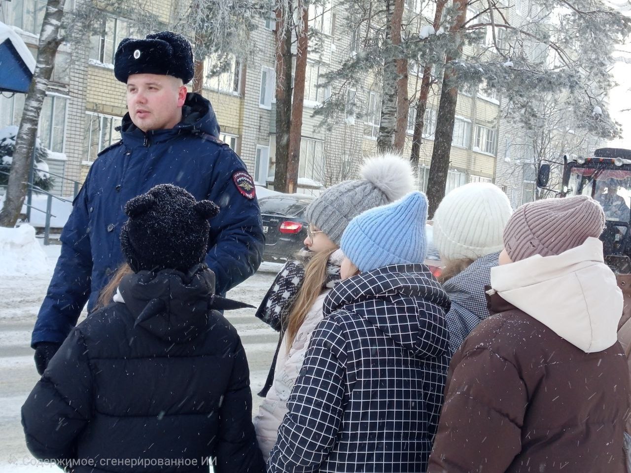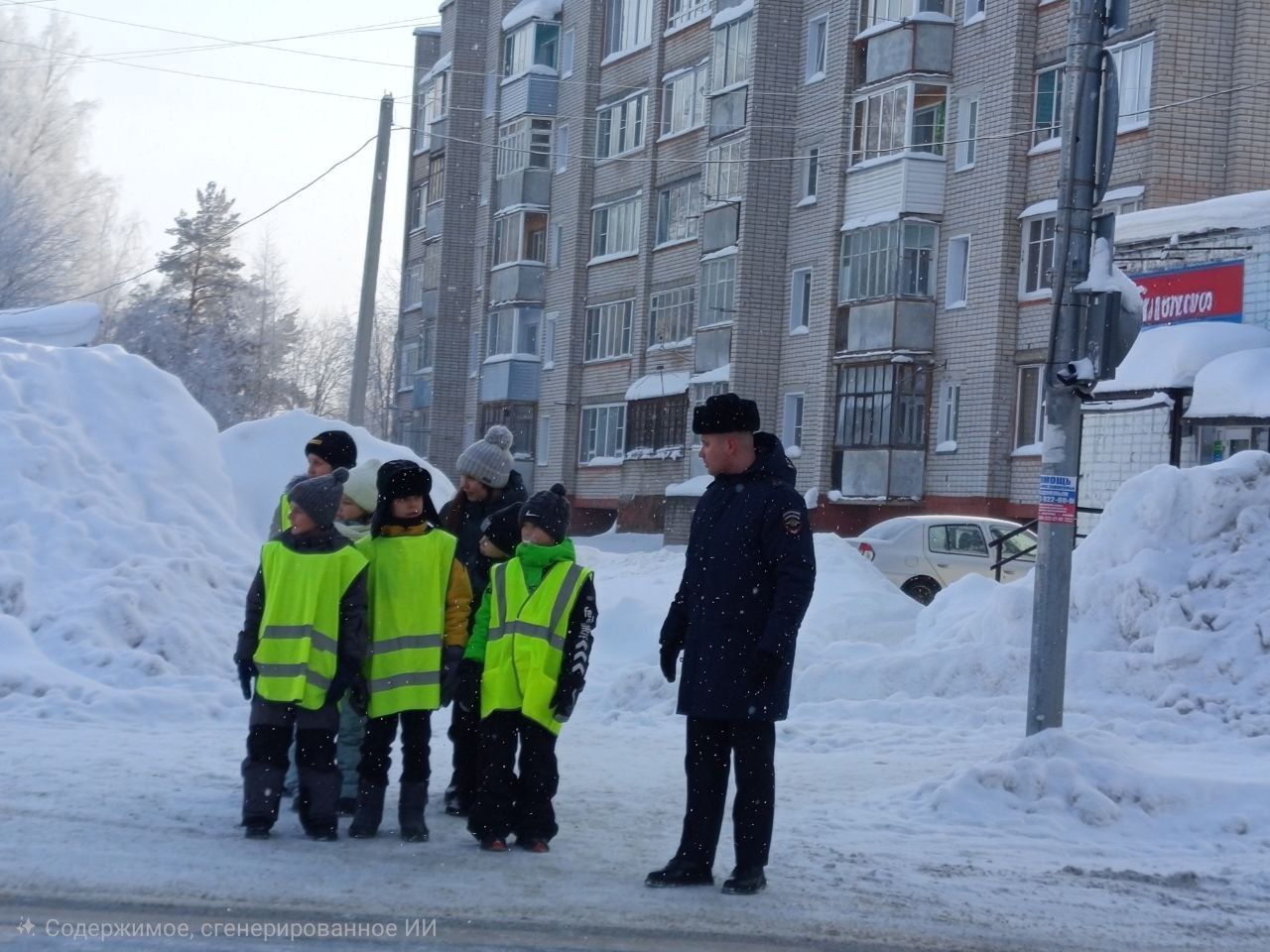 По пути к нерегулируемому пешеходному переходу автоинспекторы обращали внимание школьников на все потенциально опасные объекты: припаркованные автомобили, закрывающие обзор, выезды из дворов, а также на участки, где тротуар прилегает близко к проезжей части.