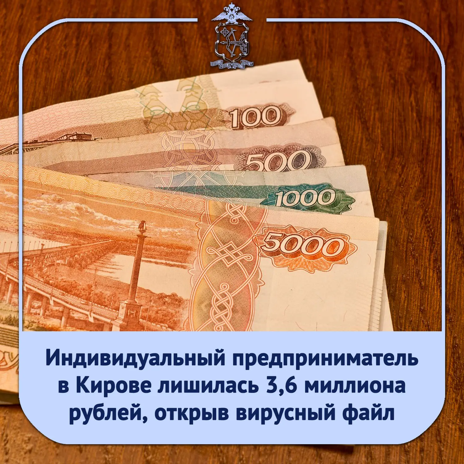В УМВД России по городу Кирову обратилась 23-летняя кировчанка, индивидуальный предприниматель, занимающаяся оказанием услуг гостиничного бизнеса, с заявлением о хищении со счета ИП более 3,6 миллионов рублей.